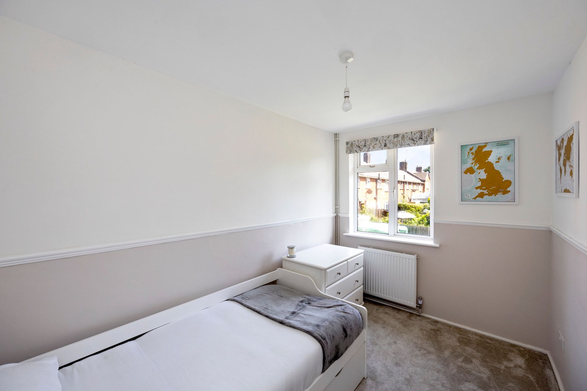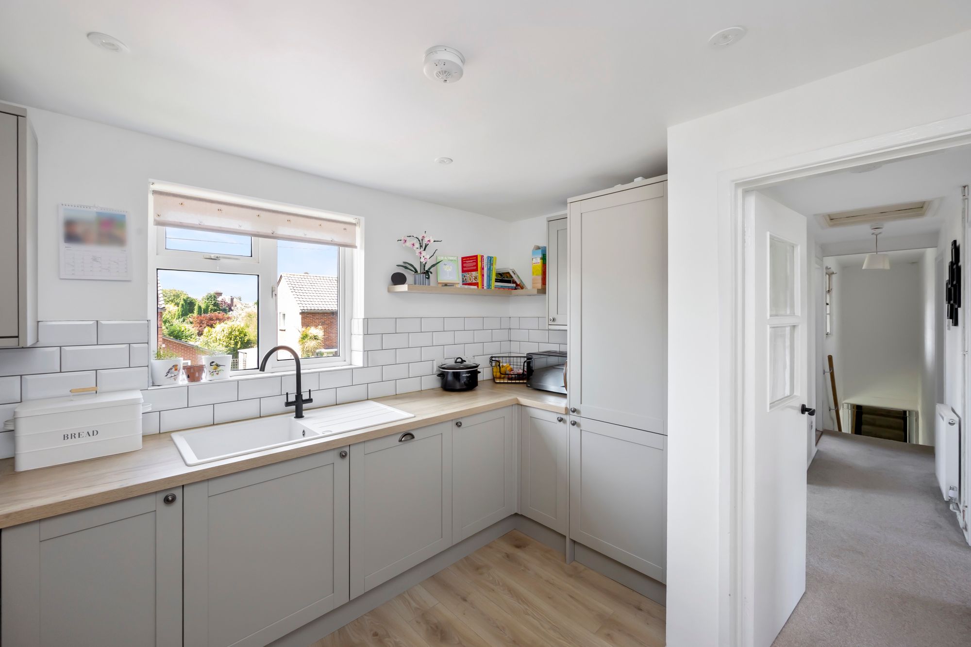 A delightful recently refurbished two bedroom, first floor maisonette which is located in a quiet cul-de-sac in Broadbridge Heath village. This property benefits from being centrally located means there are an array of amenities that the village offers including village shop/post office, public house as well as Shelley Primary School, Tesco superstore, additional shops, sports centre, churches, clubs and bus services within walking distance. The nearby town of Horsham has a wider range of amenities including Tanbridge House secondary school, which is within walking distance, and Horsham main line station with direct services to London in just under an hour. There are excellent road links with the A281 and A24 nearby. As the floorplan shows, the accommodation comprises sitting room, kitchen, double bedroom, further single bedroom and a shower room as well as a utility/store room. Outside to the front there is a private gated garden which is currently used for parking and could fit multiple cars and to the rear, the property has a raised planting border and an outside store.