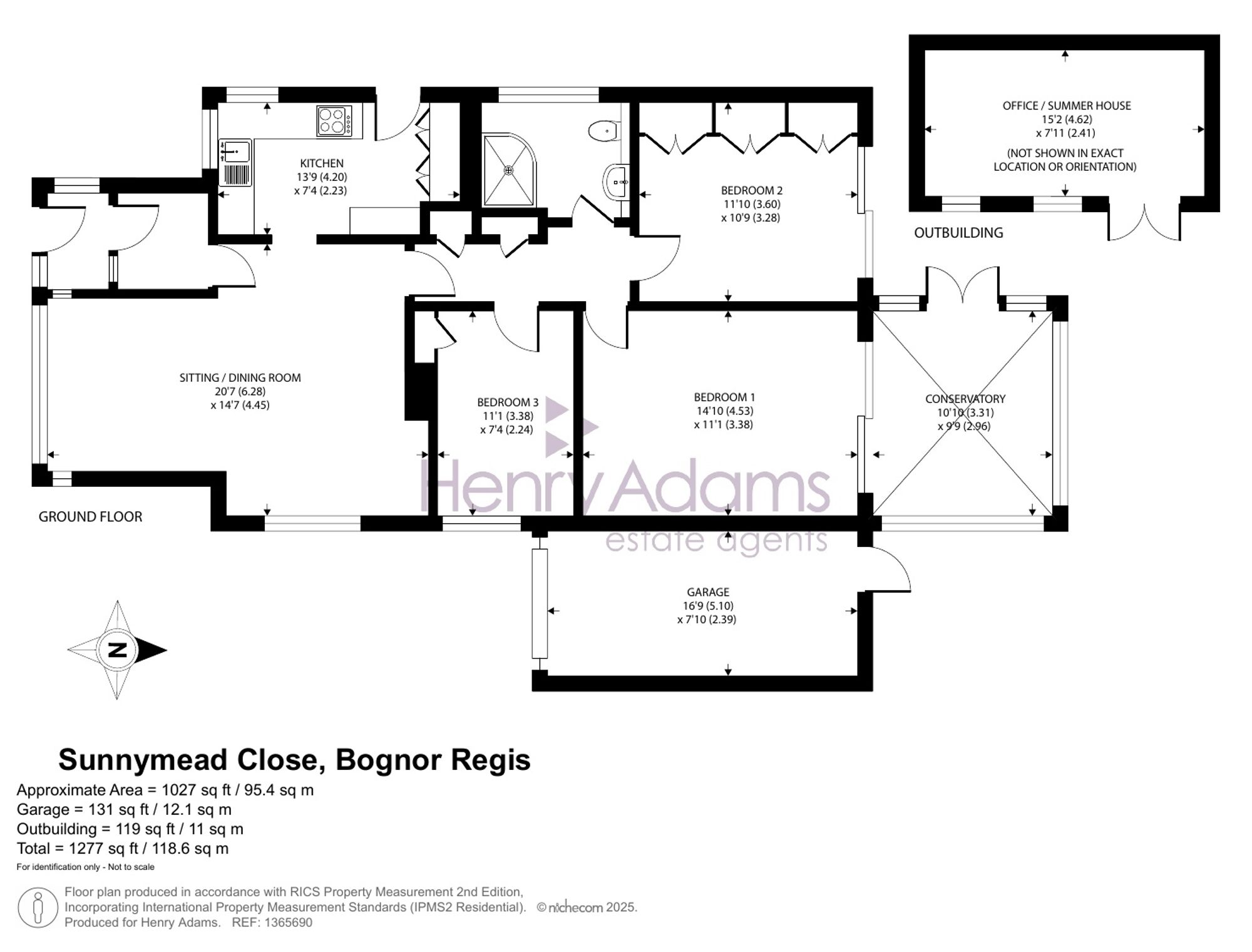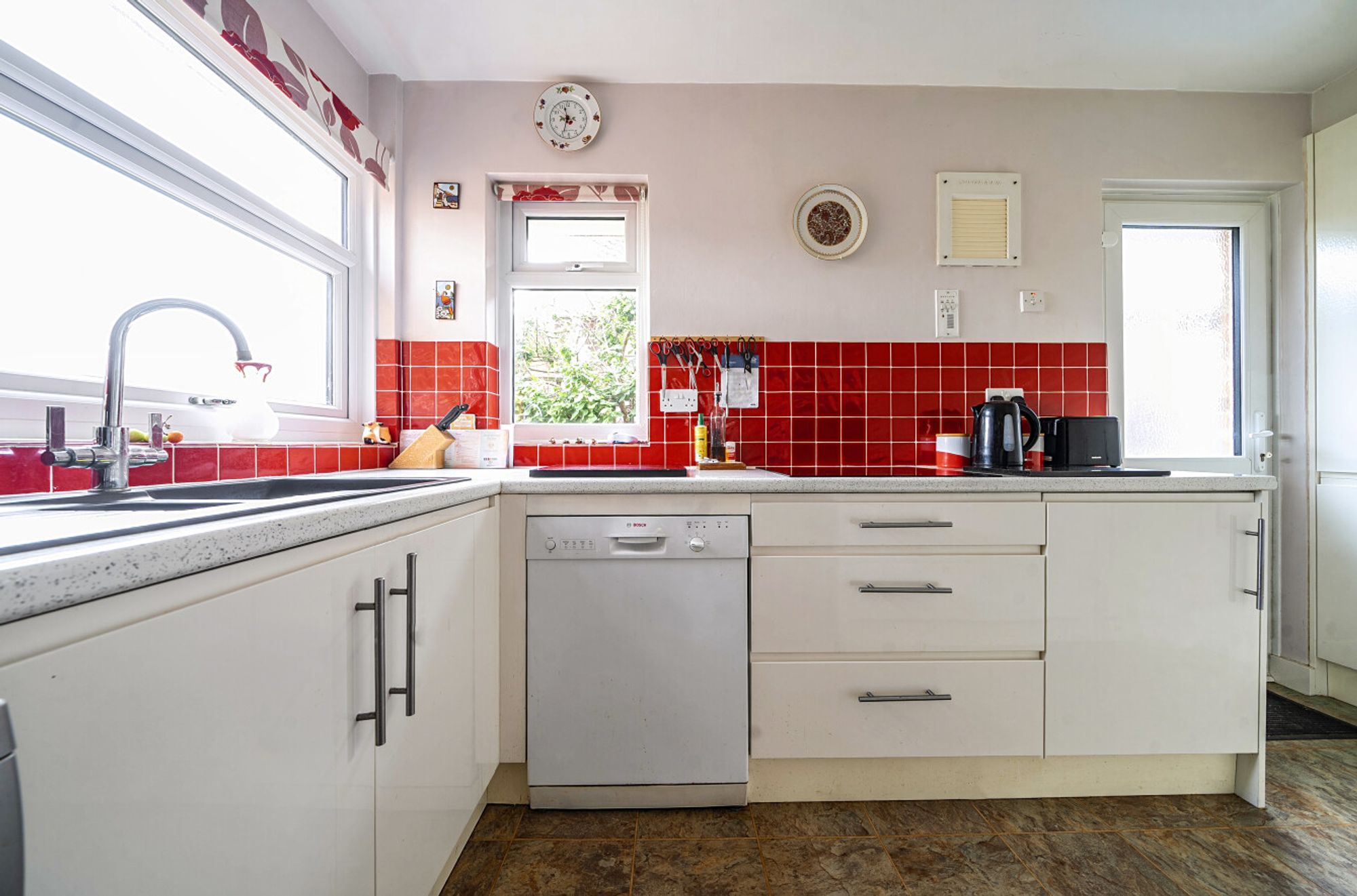 Measuring a generous 1,277 sq ft in total, the accommodation briefly comprises: enclosed entrance lobby with secondary front door opening into the sunny, south facing sitting-dining room. This room features a focal fireplace and delightful woodblock flooring which extends through the inner hall and into all three bedrooms. The kitchen is fitted with a range of white units providing ample storage along with an integral hob, oven and fridge-freezer, and spaces for both washing machine and dishwasher. From the inner hallway the modern shower room and all three bedrooms will be found. Bedrooms one and two are both double rooms with the second bedroom having a sliding door to the rear garden and the principal bedroom leading to the conservatory.