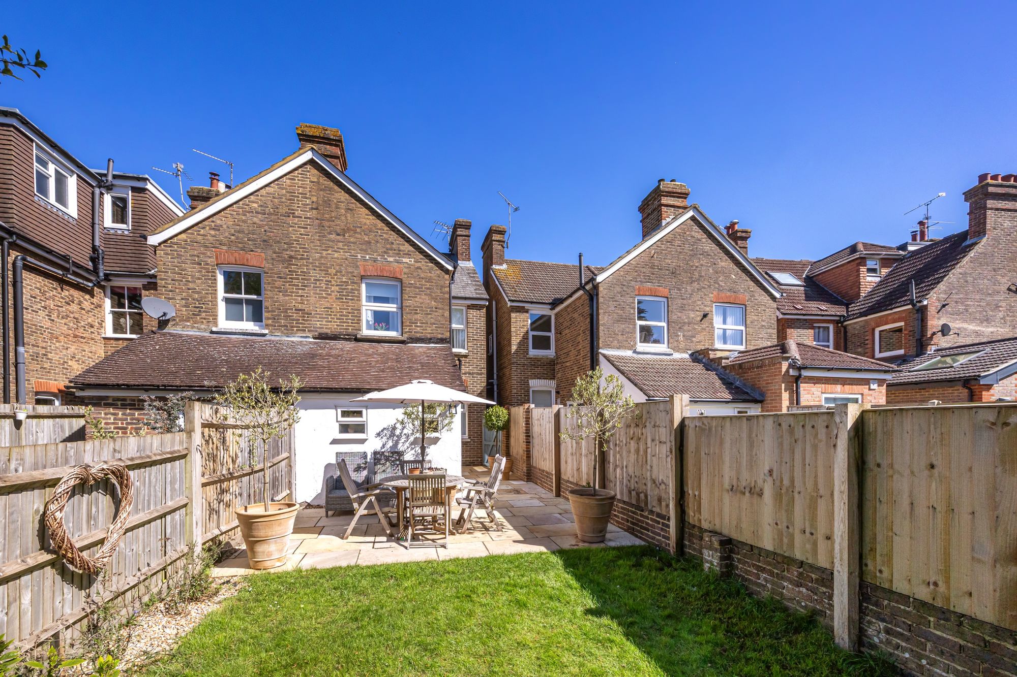 This tastefully styled and well presented three-bedroom period property is situated on the West side of Horsham offering access to the mainline train station, nearby Horsham town Centre, the open countryside and a selection of well-regarded local schools. There is a superb blend of living and bedroom space arranged over two floors; to the ground floor the main sitting room enjoys a bay window to the front aspect and centres around a fireplace with cleverly designed built in storage within the alcoves. The dining room is part open to the living room and has a light, airy feel and enjoys views over the rear gardens and is positioned conveniently adjacent to the kitchen. The kitchen has a modern style and a selection of high-end integrated appliances, there is also a Butler style sink and a tiled floor running through, there is a separate utility area which houses space and plumbing for a washing machine and tumble dryer. Also of note to the ground floor is a modern downstairs cloakroom.
