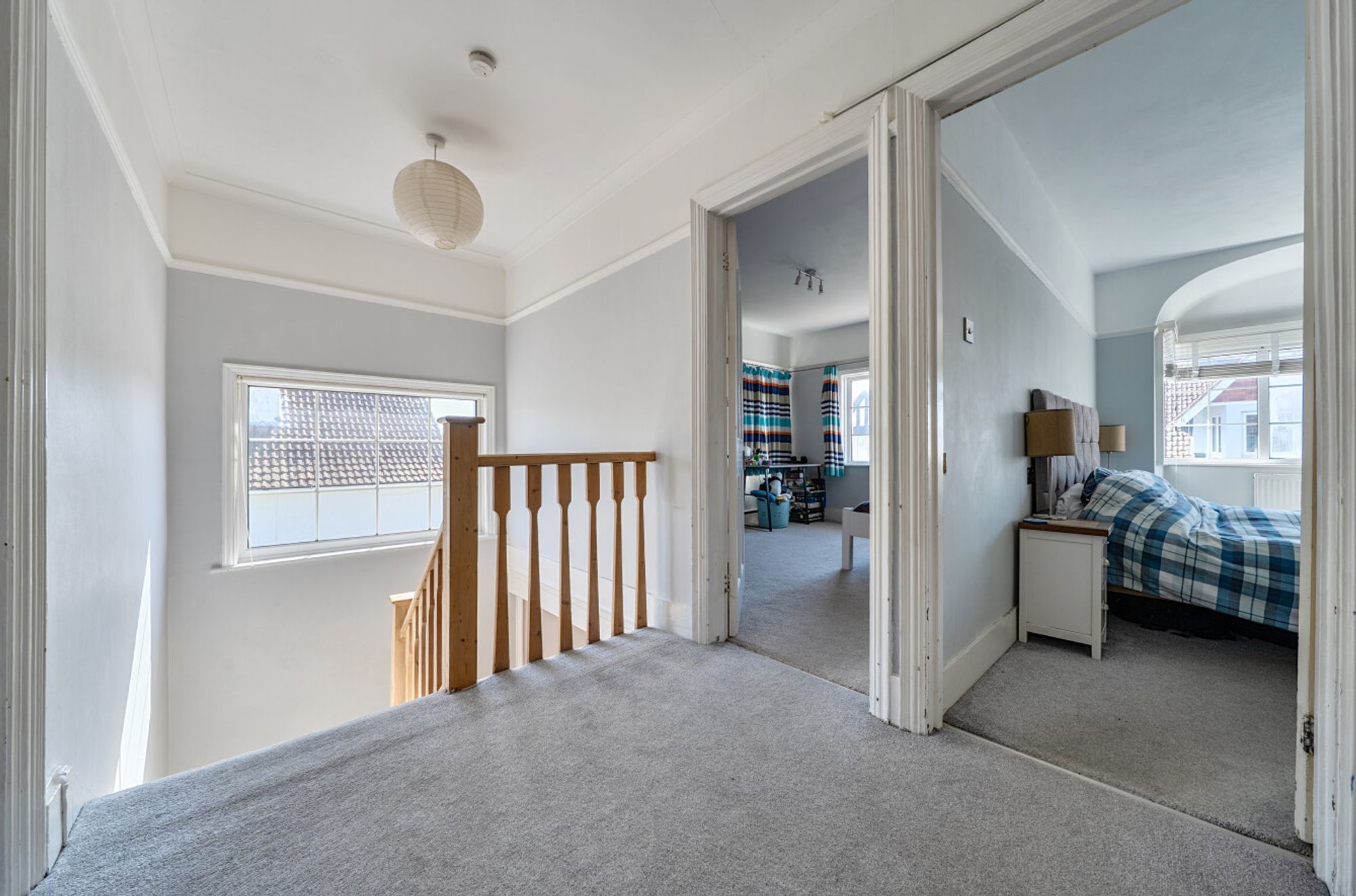 The property welcomes you with an elegant entrance hall, setting the tone for the spacious and light-filled interiors found throughout. Boasting many original features, the home is thoughtfully arranged, with three generous reception rooms providing versatile living and entertaining spaces. The main reception room features a characterful wood burner (ideal for cosy evenings), while large windows throughout ensure a bright and airy atmosphere. The kitchen and dining area are perfect for family gatherings, and the four large bedrooms are all beautifully proportioned, offering ample space for relaxation and storage. The stylish landing adds a touch of grandeur, and the property also benefits from a useful garage, providing secure parking or additional storage. Located just a short walk from the beach, this home is perfectly positioned for those seeking a tranquil coastal lifestyle without compromising on convenience.