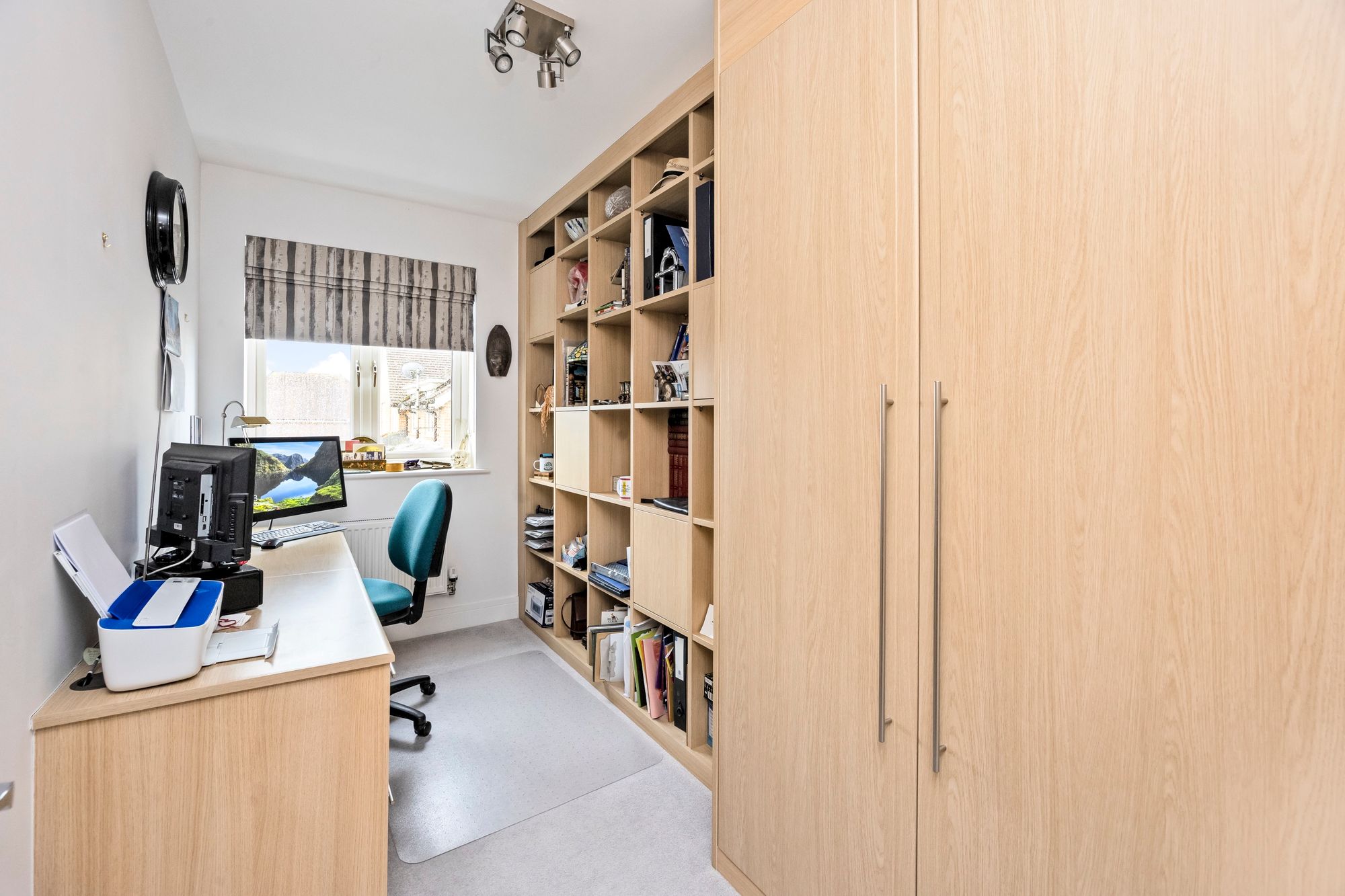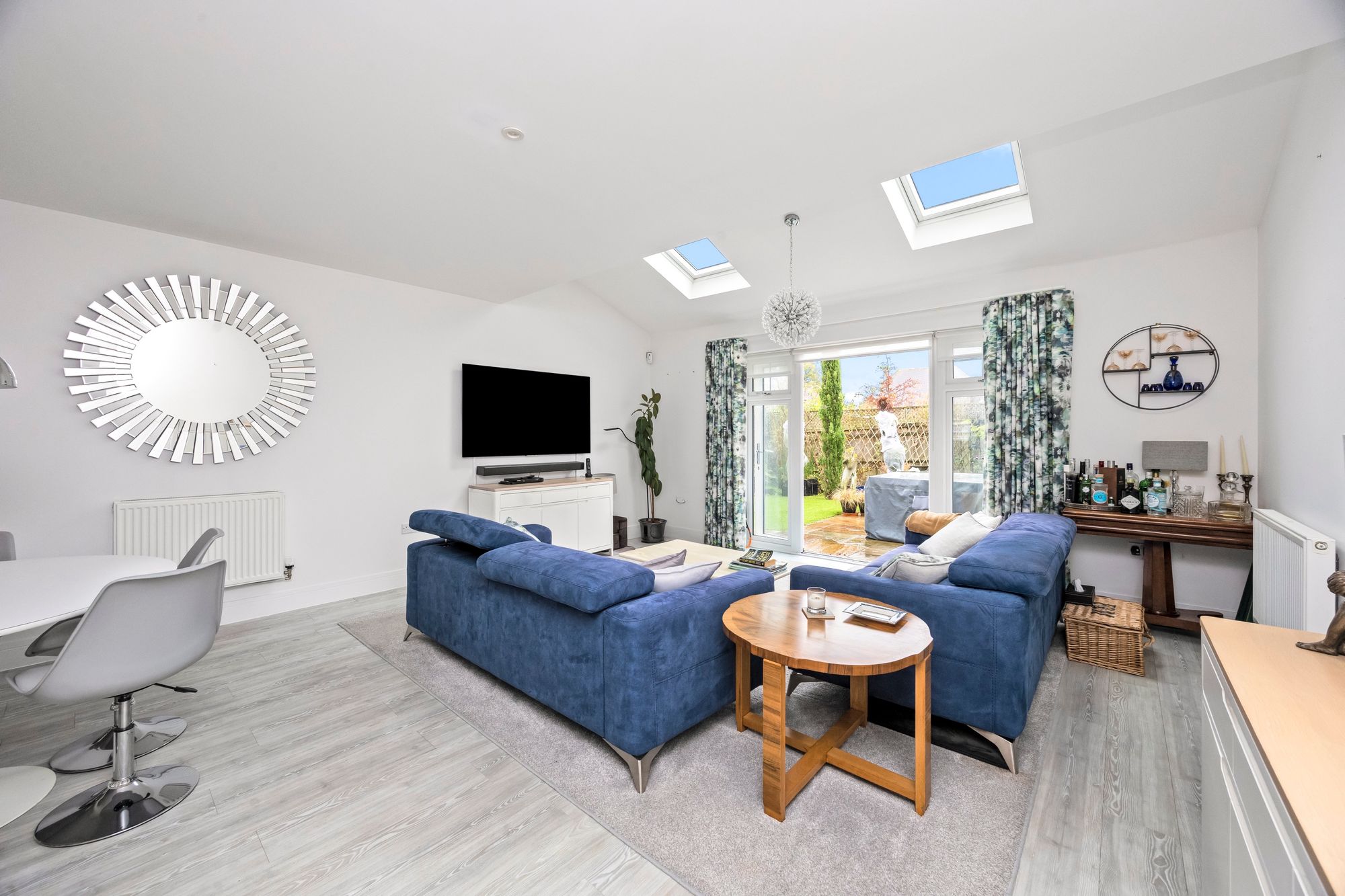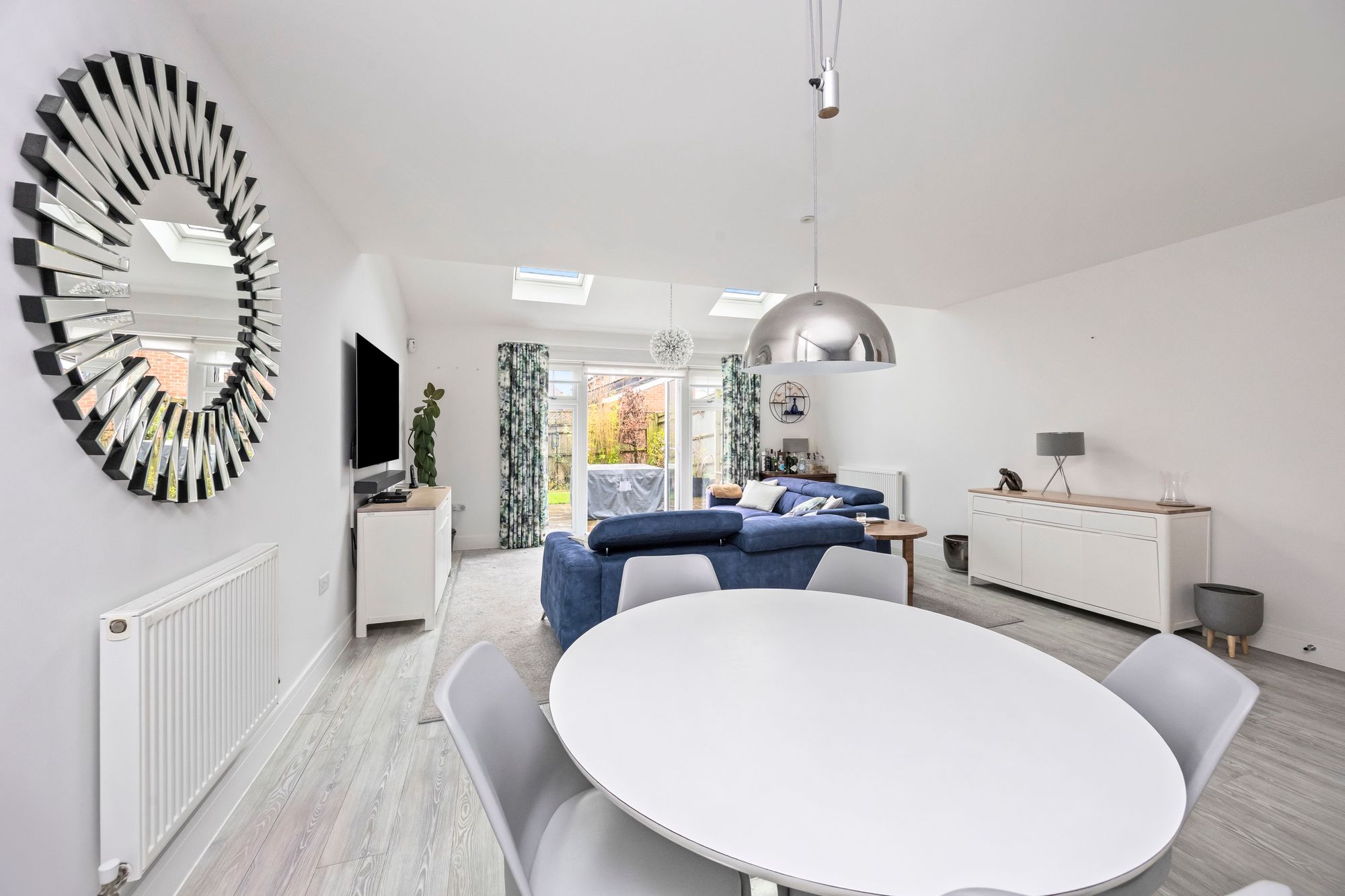 To the ground floor, the reception hallway welcomes you and leads through to the main sitting room which enjoys an aspect over the rear gardens and is flooded with light due to the skylight windows. There is a convenient understairs storage cupboard and ample space for both the sitting room furniture and dining room table. The kitchen/diner has a range of wall and base units with contrasting worksurfaces running through and a selection of integrated quality appliances. The kitchen has ample space for a breakfast/bistro table plus an aspect out to the front to the property. Also of note to the ground floor is a downstairs cloakroom with Laufen bathroom-ware and chrome Vado taps