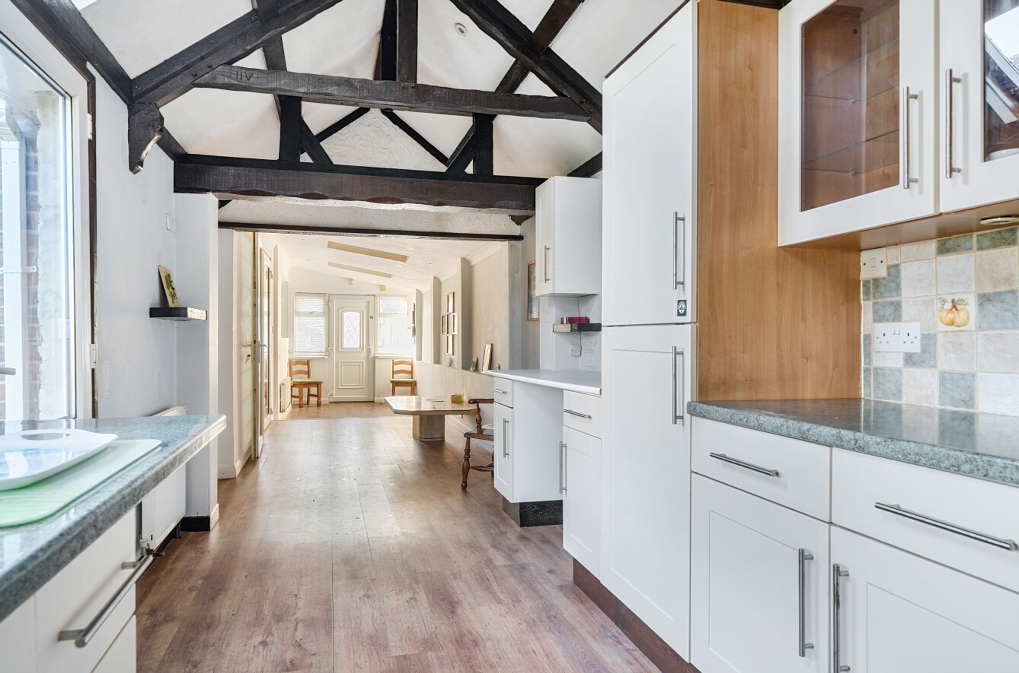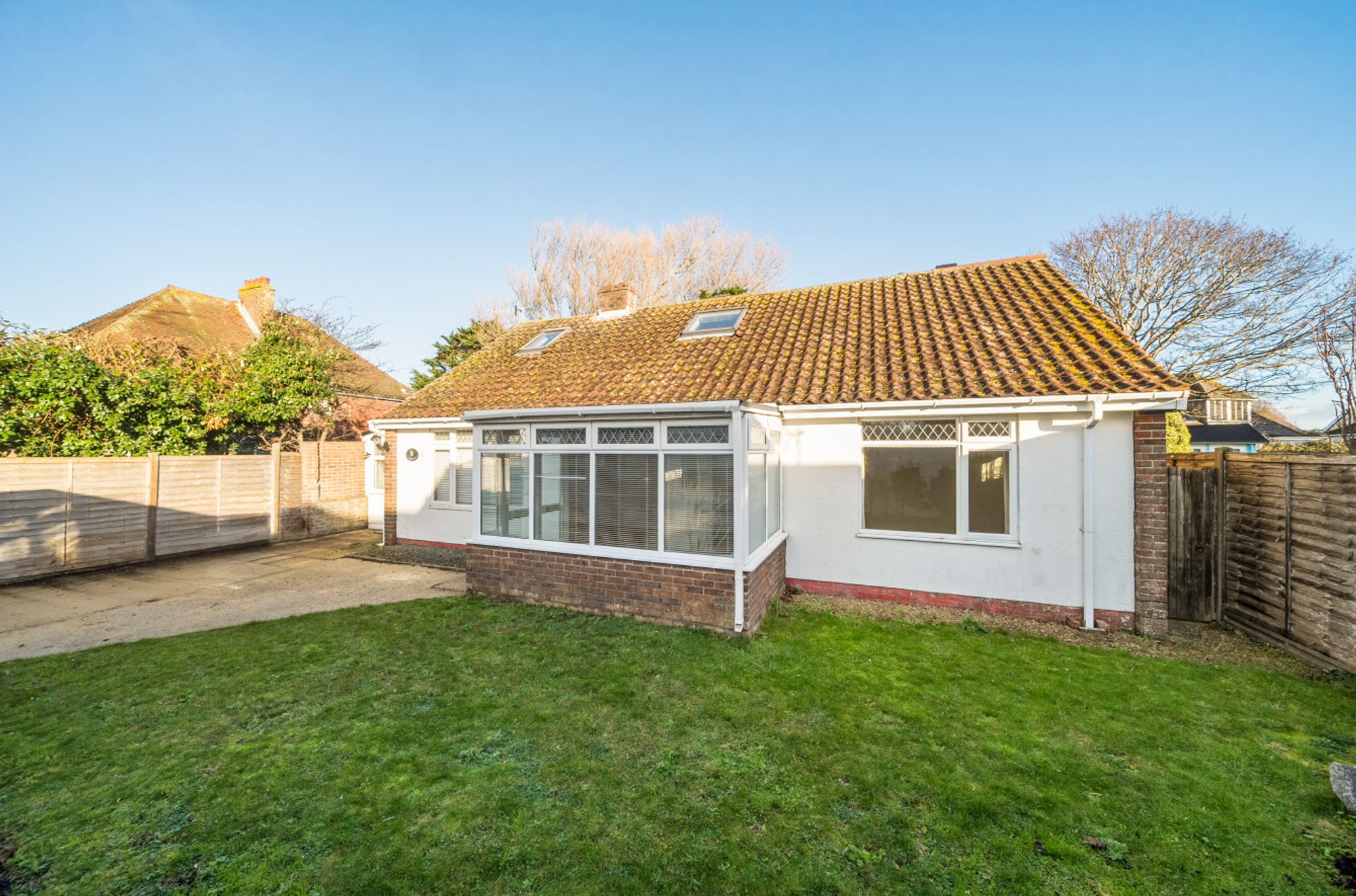 Nestled in a private corner position within a desirable cul-de-sac to the south of Selsey, this detached chalet style home offers flexible accommodation that has previously been arranged as a main residence with an annexe ( please note the annexe space is believed to not comply with current building regulations having been created by enclosing part of the driveway and converting the garage at some point within the last 25 years ) The property is presented to the market with no onward chain, providing an excellent opportunity for buyers seeking a swift and straightforward move. Inside, the generous reception space is open plan to a kitchen/utility/dining area. The adaptable layout lends itself to a variety of lifestyle needs, whether you require additional bedrooms, a home office, or separate living quarters. A driveway to the front provides convenient off road parking, adding to the practicality of this well-appointed home.Situation