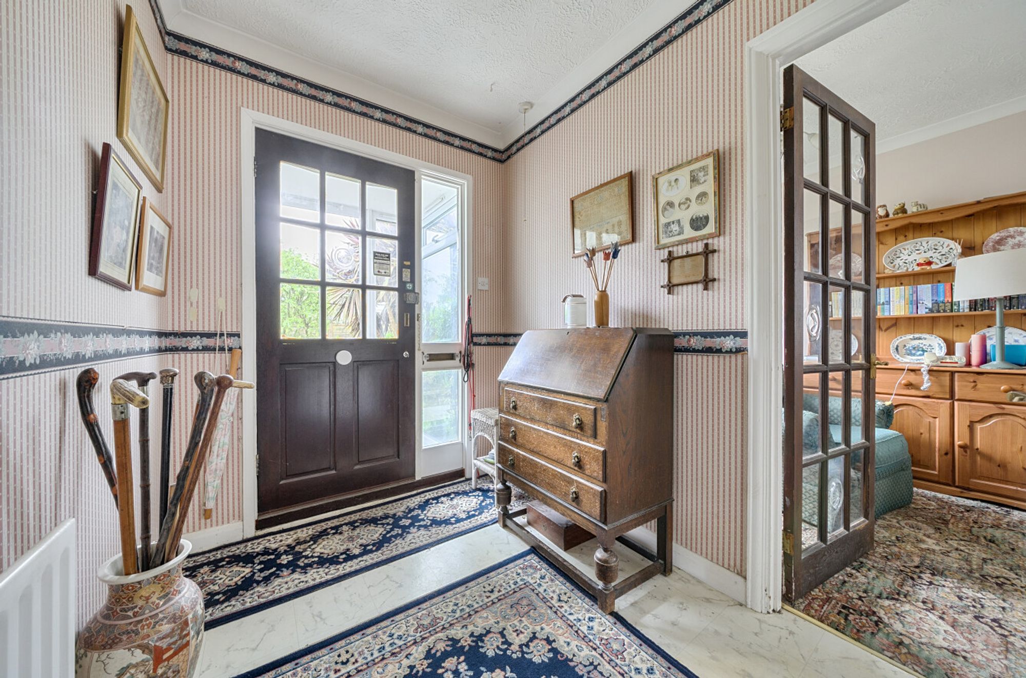 This quirky and individual semi-detached bungalow is offered to the market for the first time since the late 1980s, presenting a rare opportunity to acquire a unique home in a sought after road. Believed to be of non-standard construction (timber framed), requiring modernisation and updating the property is available to cash buyers only due to the nature of its build. The interior comprises three double bedrooms, offering ample accommodation for families or those seeking versatile living space. There are two bathrooms, providing convenience for residents and guests alike. The home is offered with no onward chain, ensuring a straightforward purchase process. The property also benefits from a generous driveway with space for four to five cars and a detached double garage. With its distinctive character and flexible layout, this bungalow represents a fantastic opportunity for buyers seeking something out of the ordinary.Situation