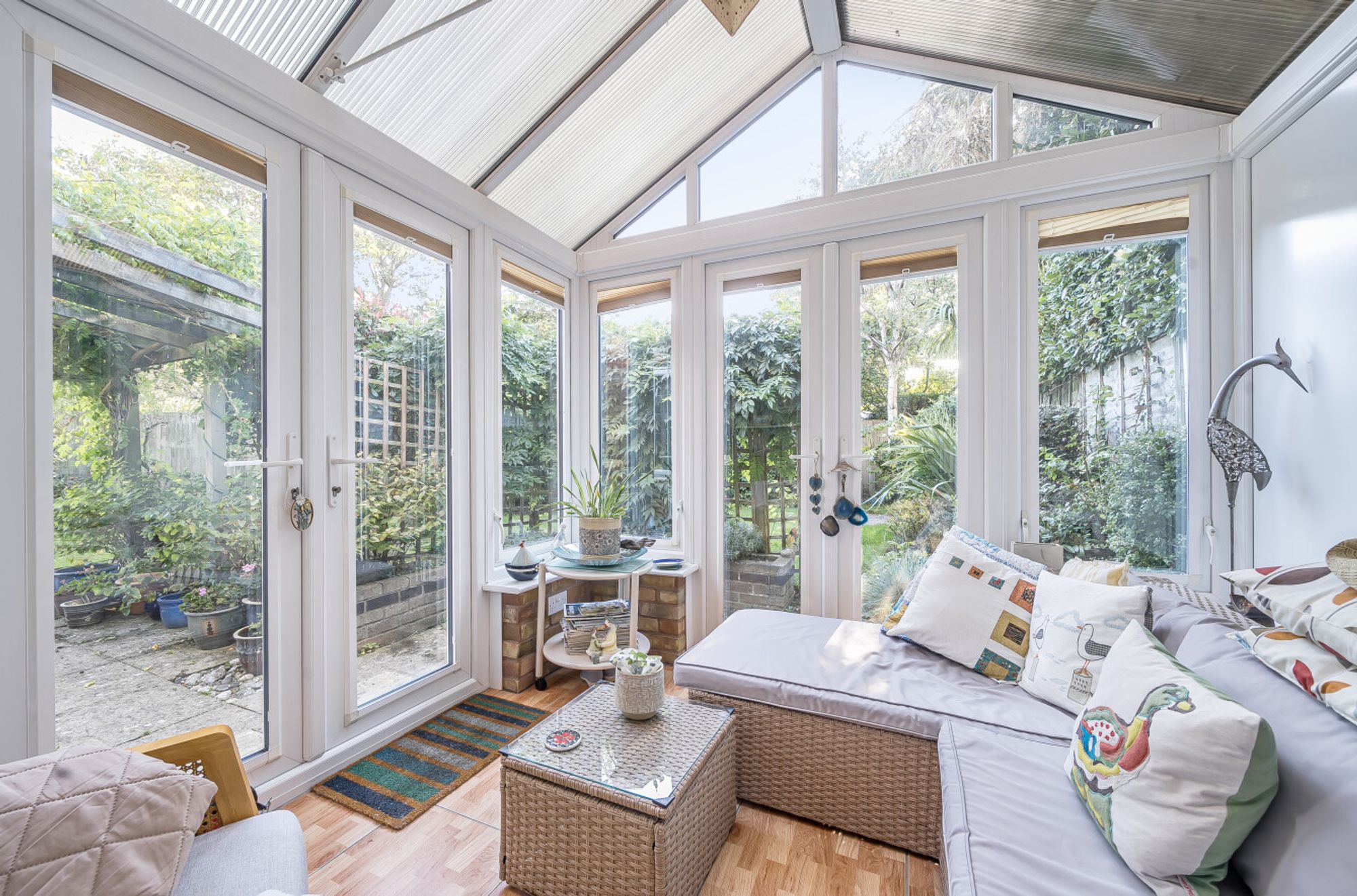 The front door opens onto an entrance hallway with stairs to first floor and doors to ground floor room including a downstairs WC and under stairs storage cupboard. The kitchen is to the front of the house and features a range of wall and base units. There is a large triple casement window and space for table and chairs. The spacious reception room has French doors opening to the conservatory with further windows overlooking the garden. The double aspect conservatory has two further doors to the garden.