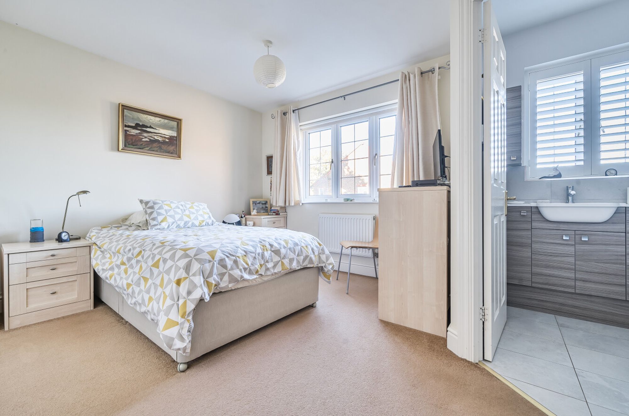On the first floor landing there is an airing cupboard containing pressurised hot water system. The principal bedroom has a large triple casement window to the front of the house, a built-in double wardrobe and further single wardrobe and an en-suite shower with corner shower, basin and WC. Bedroom two features a double casement window. Bedroom three overlooks the garden with a very green outlook and a single built-in cupboard, a family bathroom completes the first floor rooms.