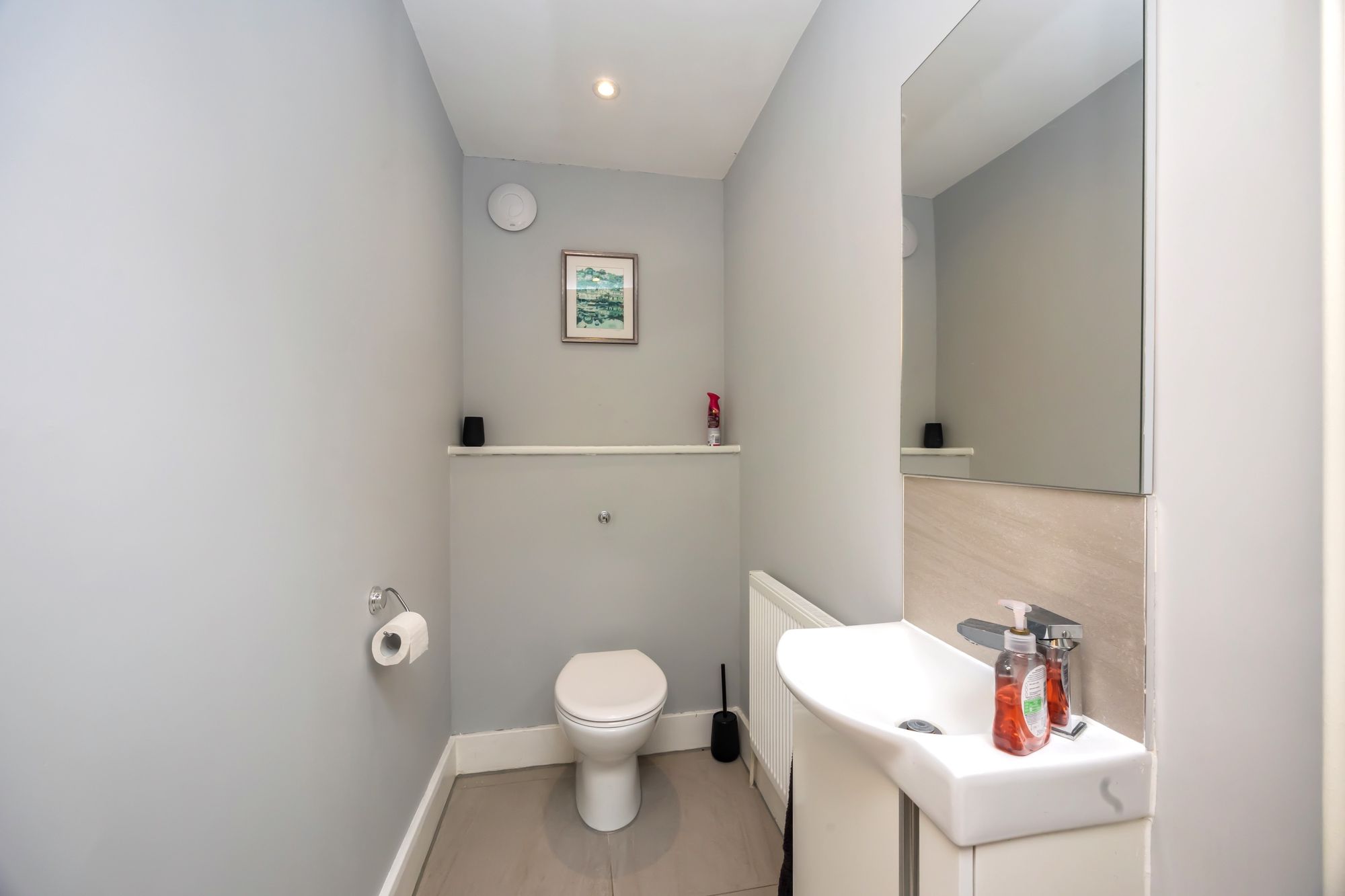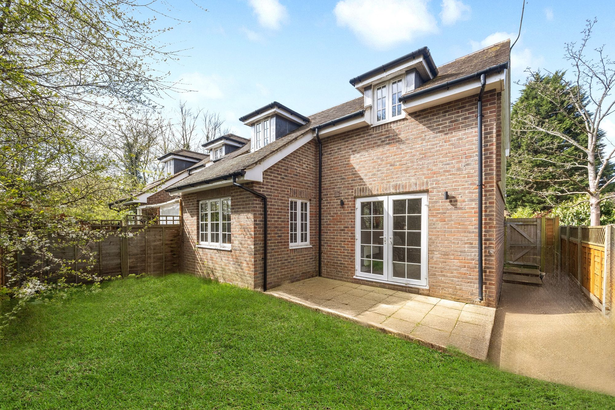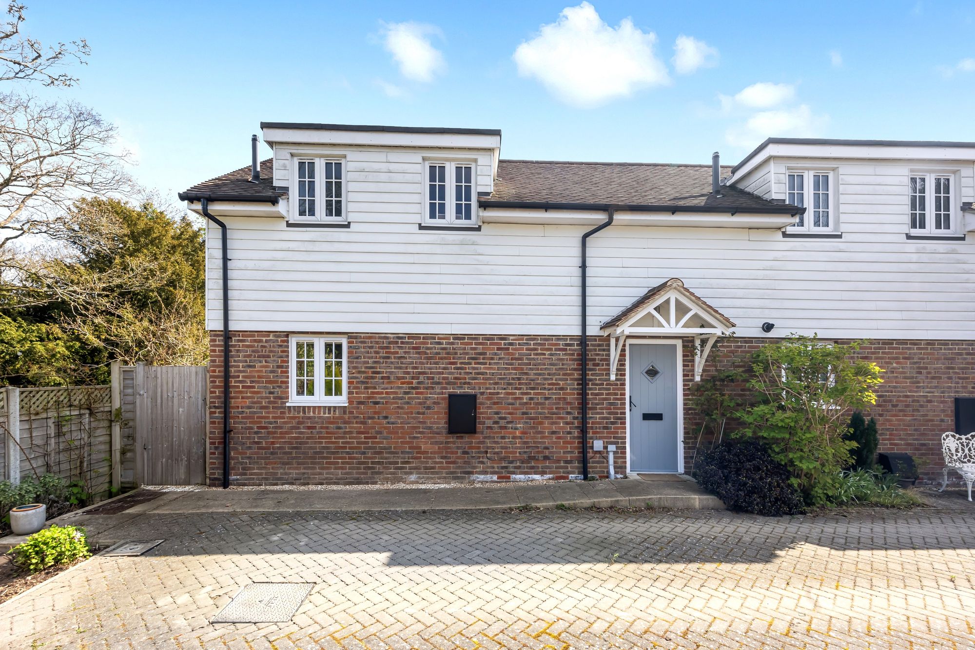 This large and well proportioned two bedroom Mews style house is situated in the heart of Rusper village and offers immediate access to the countryside, Horsham town centre is nearby and commuter routes are available to the capital and nearby Gatwick Airport. The property is offered with no ongoing chain and also has the benefit of driveway parking for two cars and a private rear garden. To the ground floor; a large and welcoming reception hallway has an under stairs storage space and flows through to the main living room. The living room enjoys a double aspect overlooking the rear garden and has a light and airy feel. The kitchen/breakfast room is of generous proportions and has double doors that lead directly out onto the rear garden terrace. The kitchen has a range of wall and base cabinets with a modern and contemporary finish with white gloss cabinetry and contrasting work surfaces flowing through, there is also a tiled floor along with a selection of quality integrated appliances. Also of note to the ground floor is a cloakroom with a low-level WC and a wash hand basin.