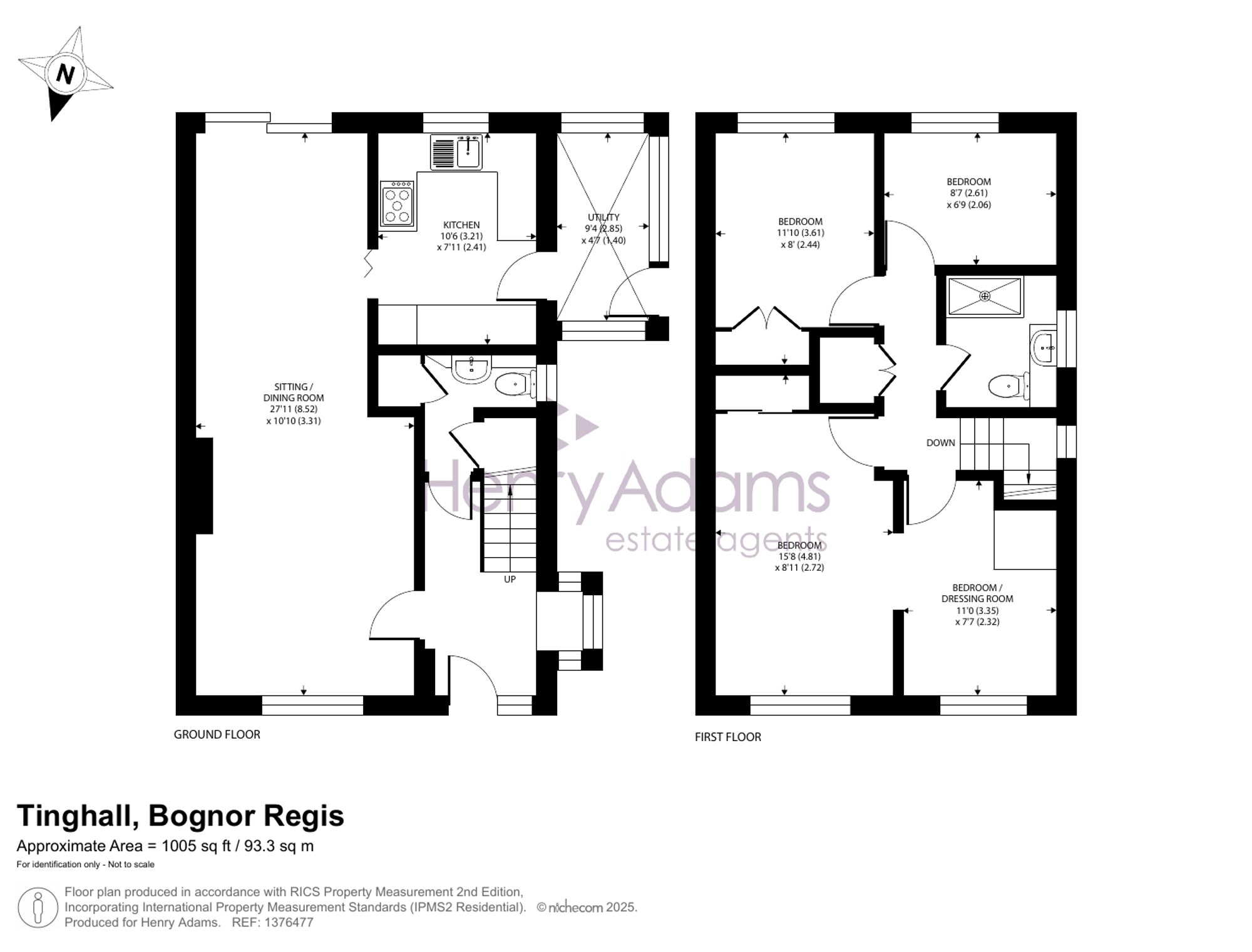 Upstairs, the principal bedroom has fitted wardrobes and boasts a dressing area (or additional bedroom, depending on your needs). There is a 2nd double bedroom with fitted wardrobes and a 3rd bedroom/study. There is a modern shower room fitted with a vanity basin and WC plus a spacious airing cupboard on the landing.