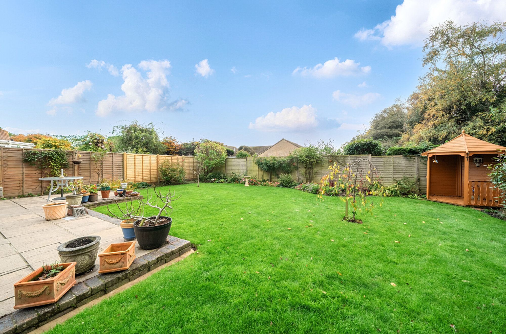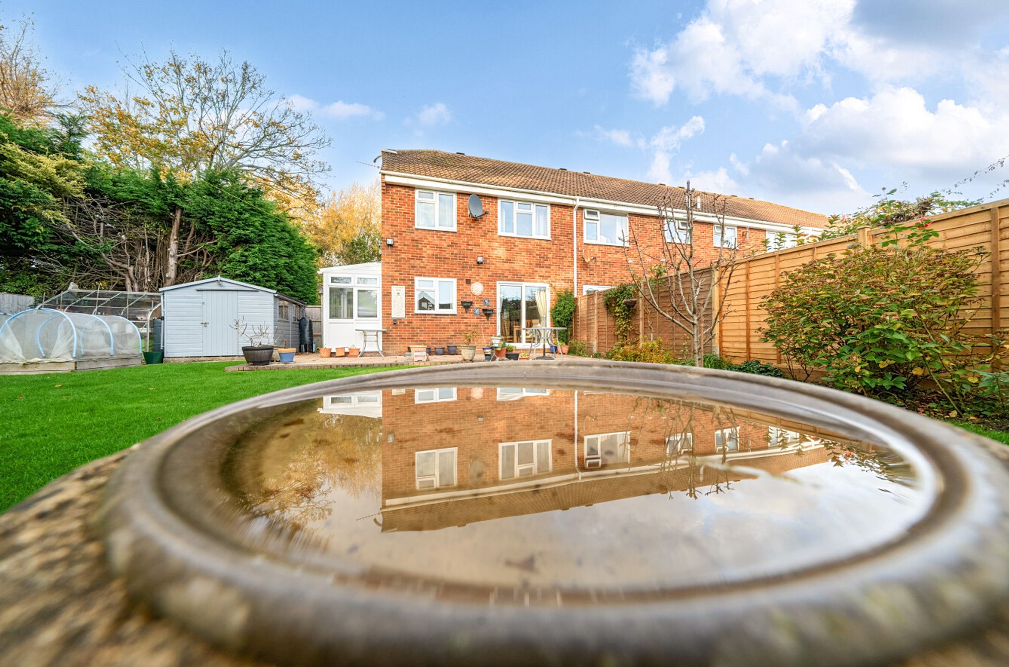 Located in a quiet cul-de-sac overlooking a greensward, this home offers a tranquil setting with access to the nearby Aldwick Conservation woodland. With a garage and allocated parking, as well as a wrap-around garden complete with a gazebo, raised Polytunnel beds, greenhouse, and timber shed, this property has it all.