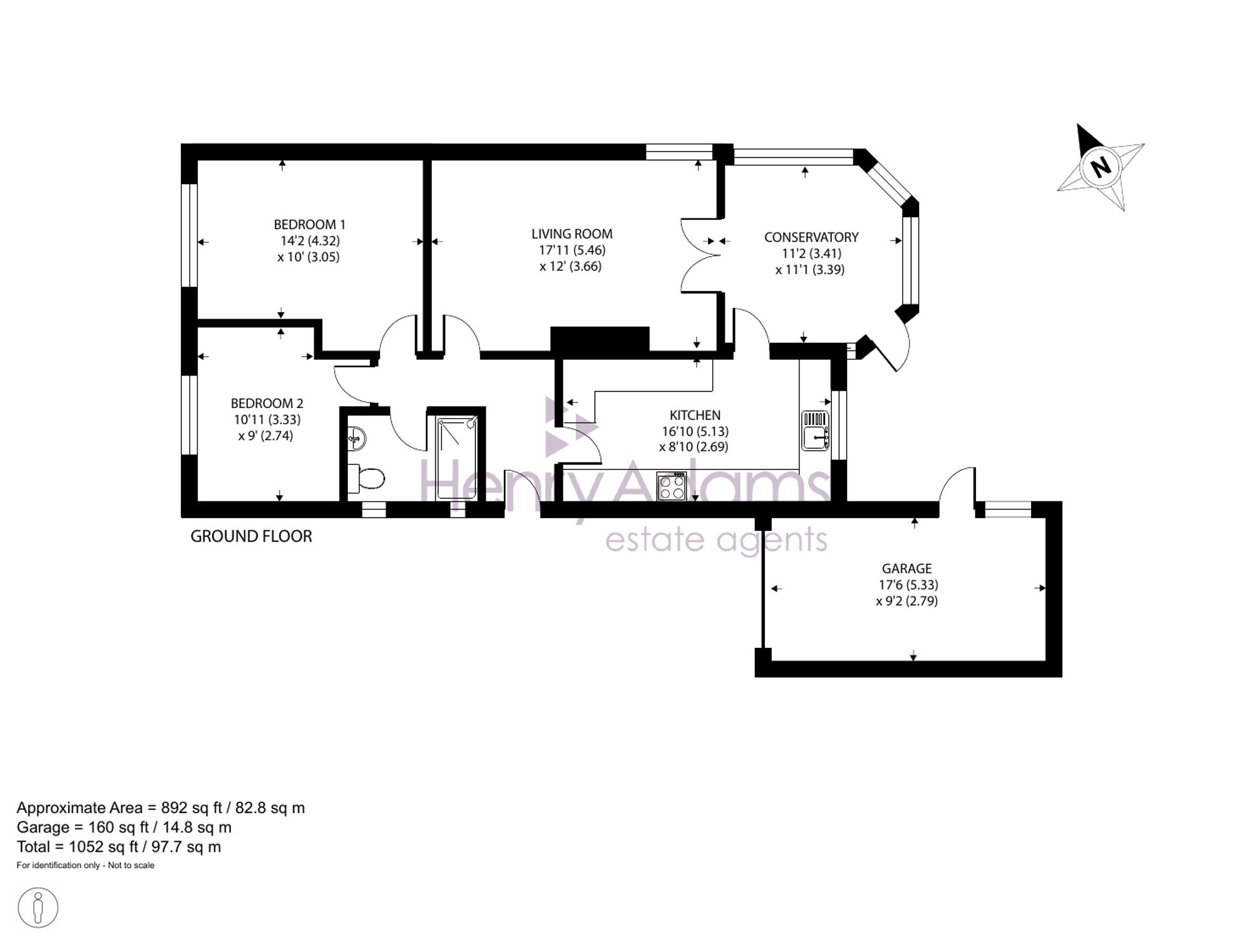• Bedroom Two 10' 11" x 8' 11" (3.33m x 2.73m)