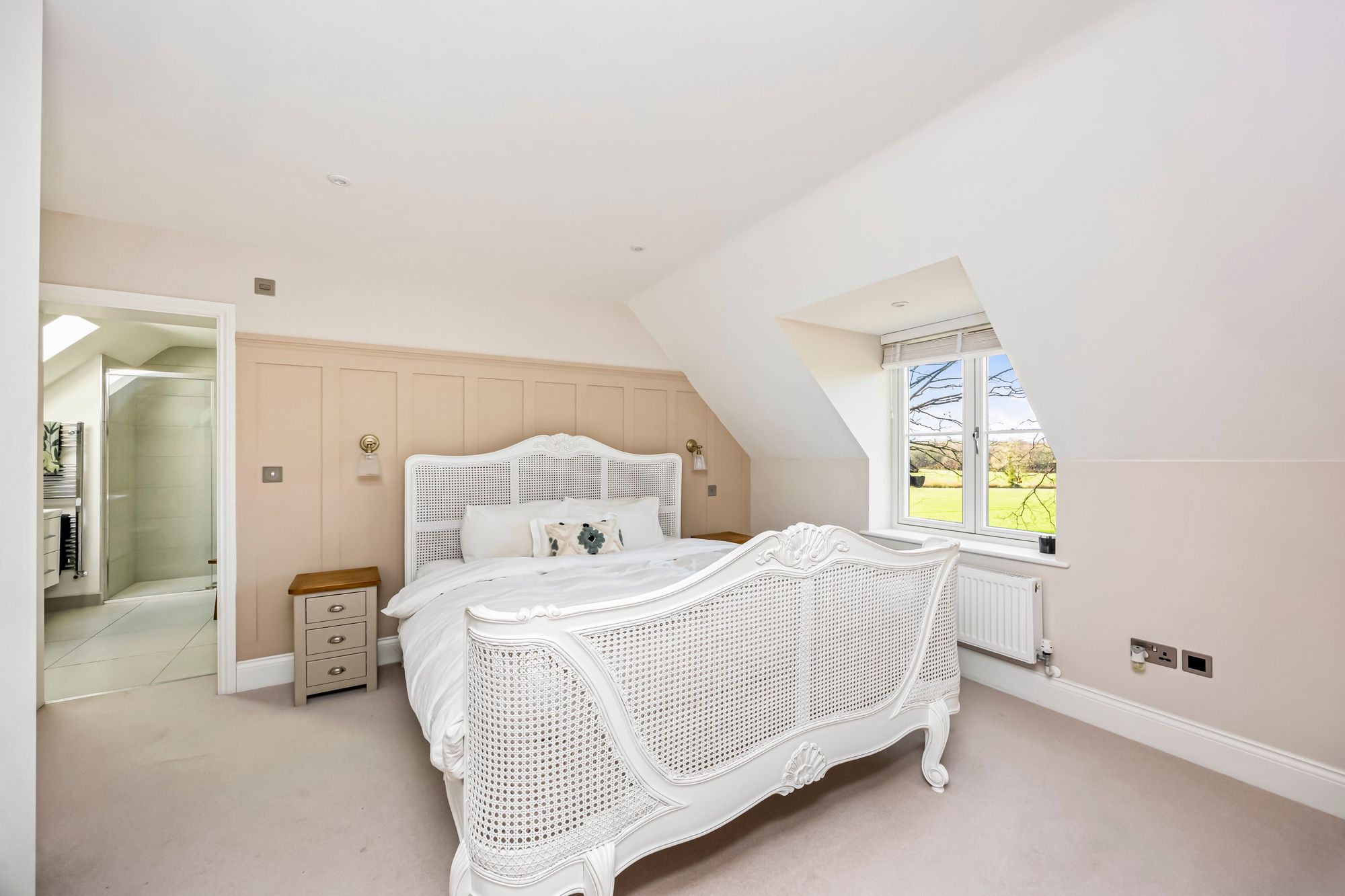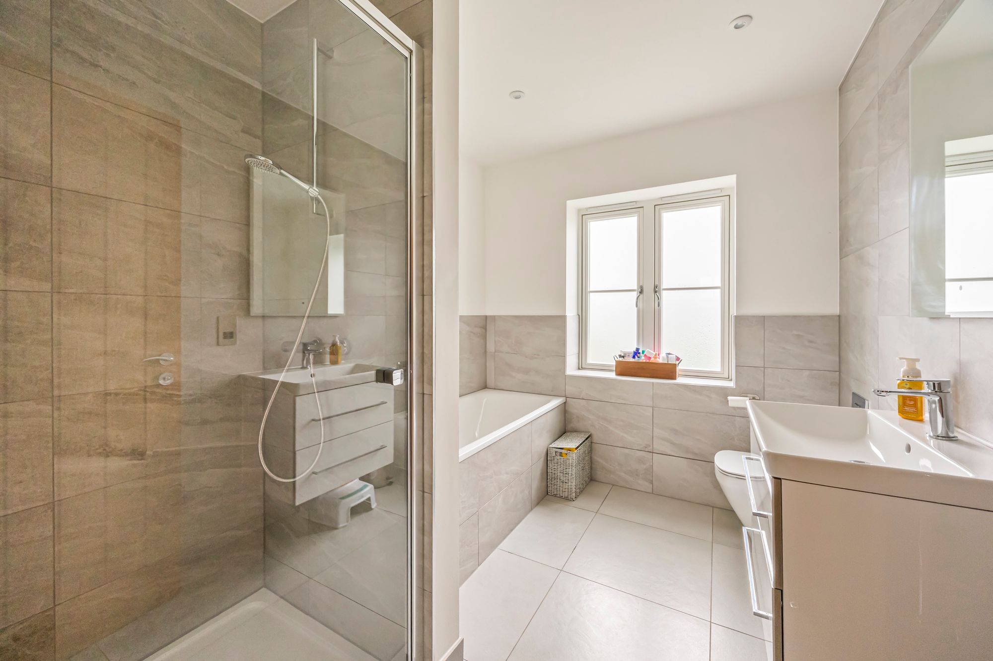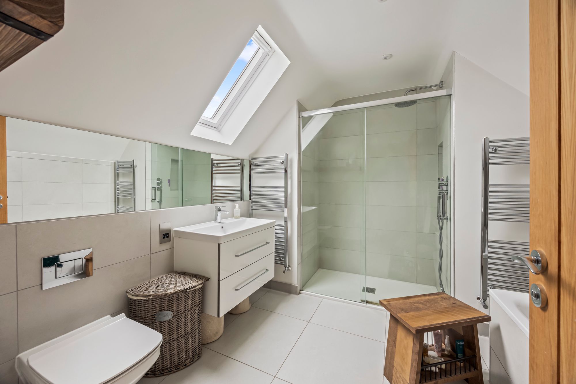 To the first floor; the main bedroom suite has a superb selection of fitted cupboard and wardrobe space, there is a separate and well proportioned ensuite bathroom which features a full suite including a large walk-in shower, separate bath, wash hand basin and a low level WC - all finished to a high specification and complimented with quality chrome fittings and Italian style tiling. There is a second guest bedroom suite which enjoys views over the rear gardens and has fitted wardrobe space and an impressive ensuite shower room. Two further double bedrooms complete the first floor along with a well equipped family bathroom which features a high specification of quality bathroom ware including a walk-in shower and separate bath.