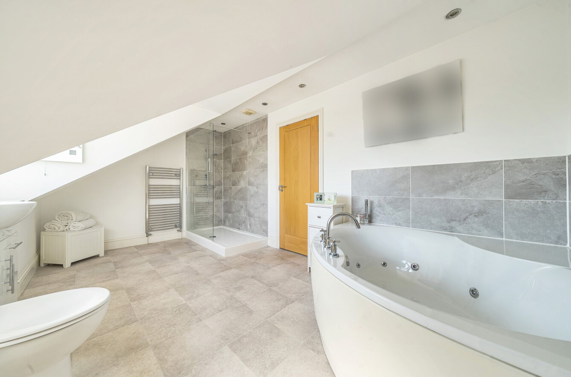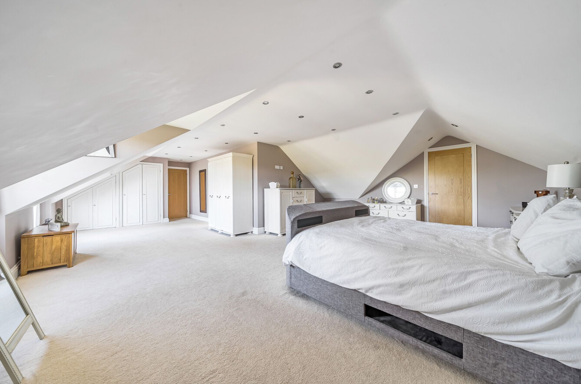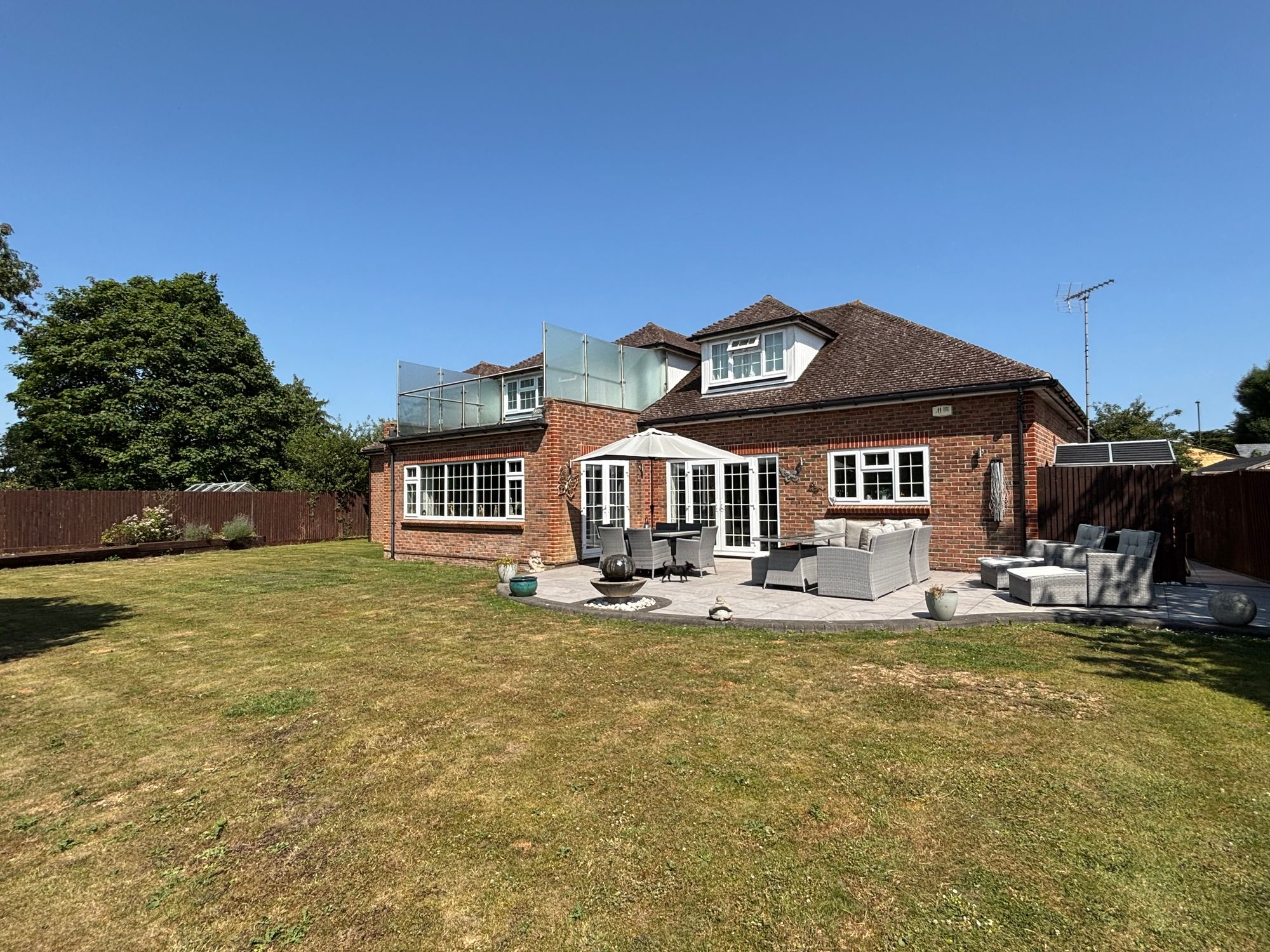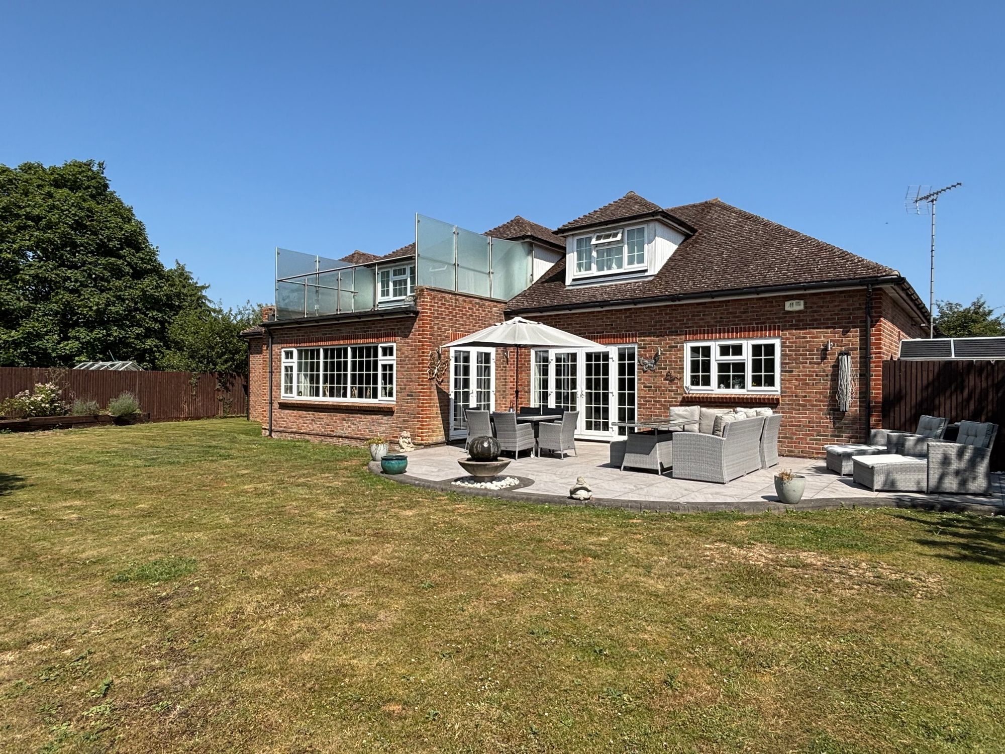 Constructed in 2011 and meticulously updated by the current owners since the original purchase. Upon entry, a grand entrance hall welcomes you with a vaulted ceiling and a staircase leading to an elegant galleried landing. The dual aspect sitting room boasts views of the westerly aspect rear garden and features French doors opening onto the southerly facing patio. The impressive kitchen/dining room serves as the heart of the home, featuring a modern design. Integrated appliances include a double oven, induction hob and dishwasher and French doors open to the rear garden. A separate utility room offers convenience with integrated washing machine and internal access to the double garage with an electric door. The ground floor comprises a double bedroom with an en-suite shower room, a further bedroom and a separate bathroom. The primary and guest bedrooms are located on the first floor, both enjoying en-suite facilities. The primary bedroom benefits from a full bathroom with a spa bath and separate shower unit, a spacious walk-in wardrobe and French doors opening onto a westerly facing balcony, providing uninterrupted rural views.