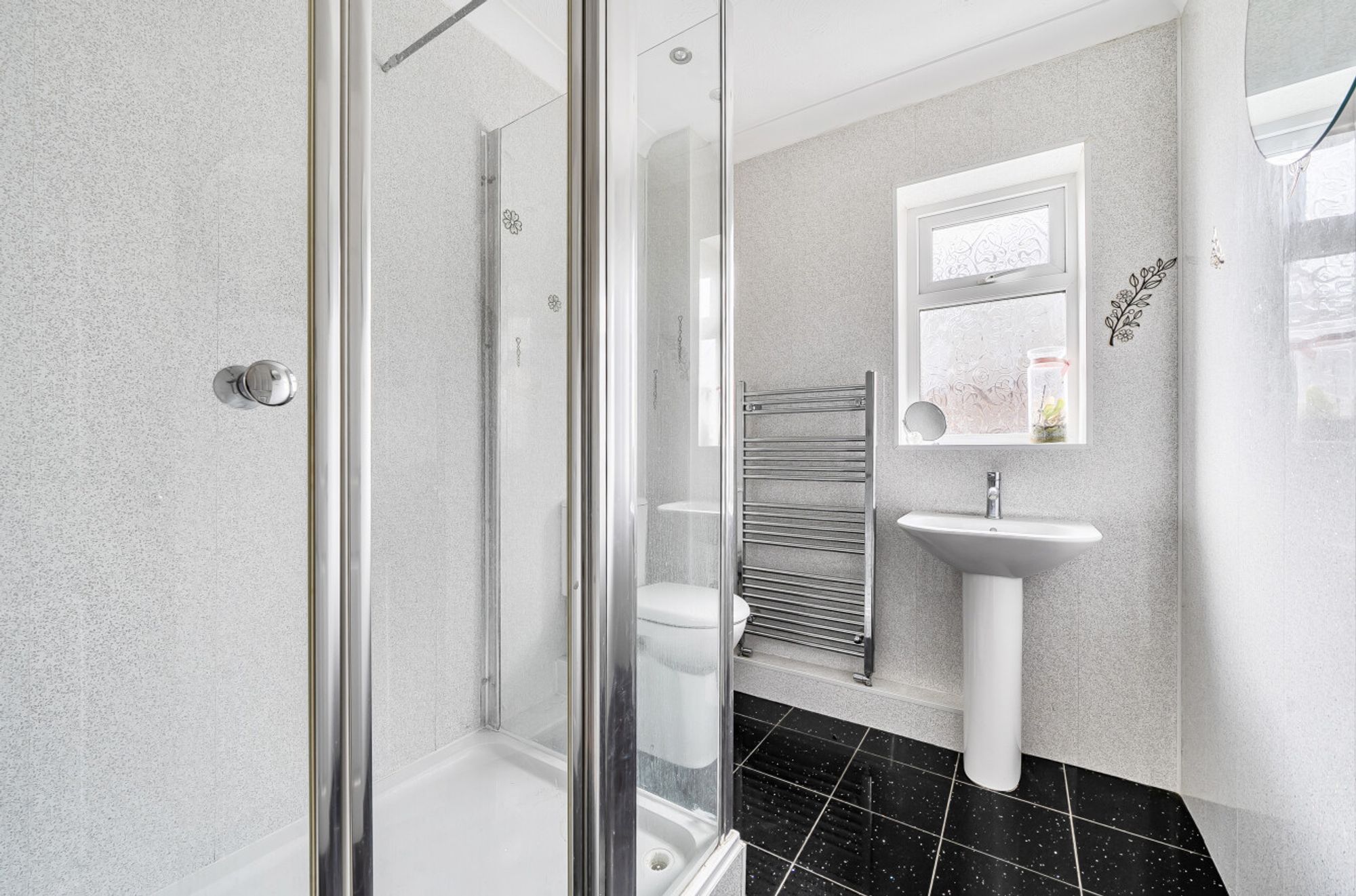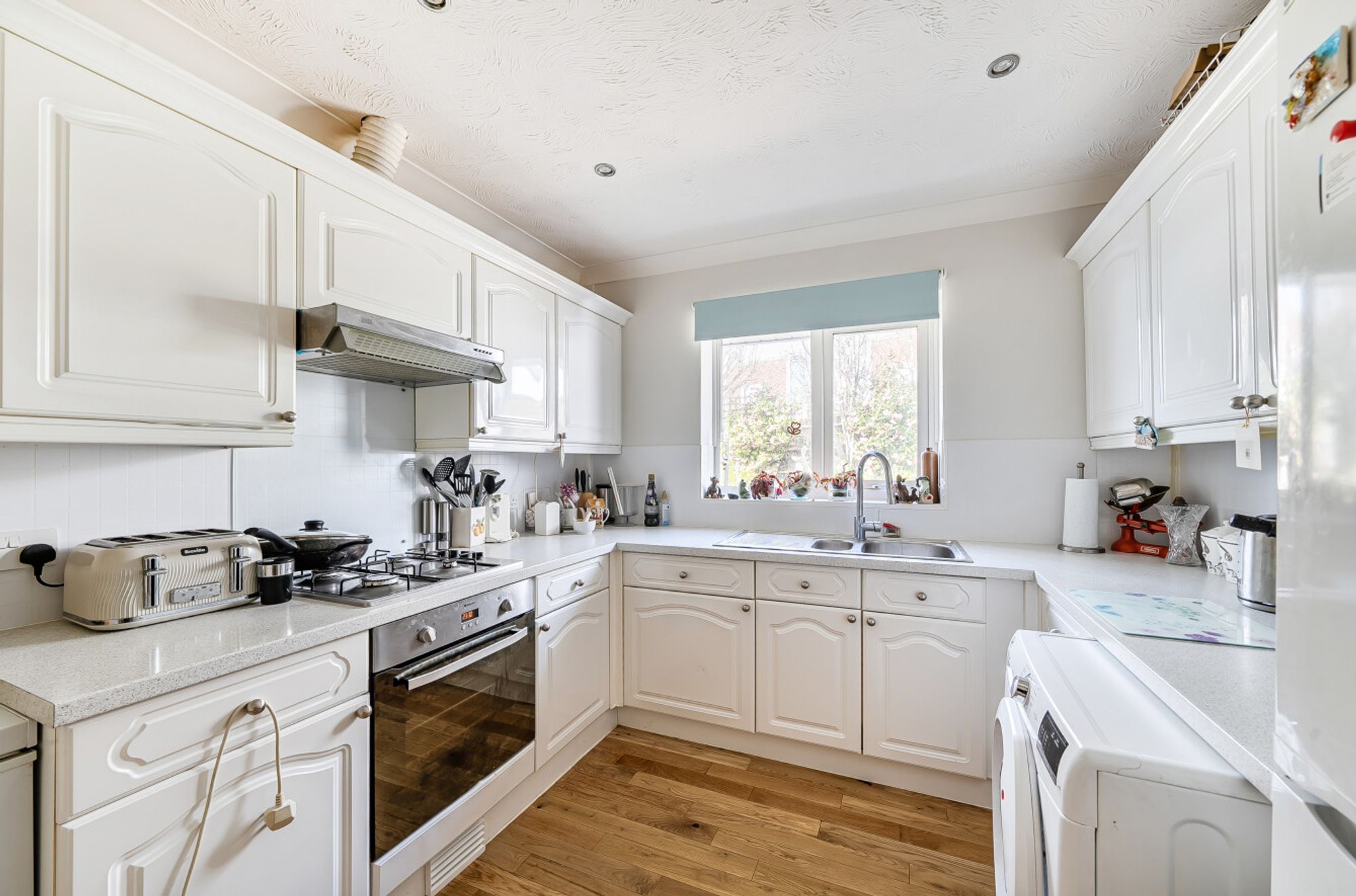 The accommodation comprises two generously sized double bedrooms and a further single bedroom, each offering flexibility for use as guest rooms, home office, or hobby space. The family bathroom is well-appointed with modern fittings. Practical features include a garage and driveway parking, ensuring convenience for multiple vehicles.