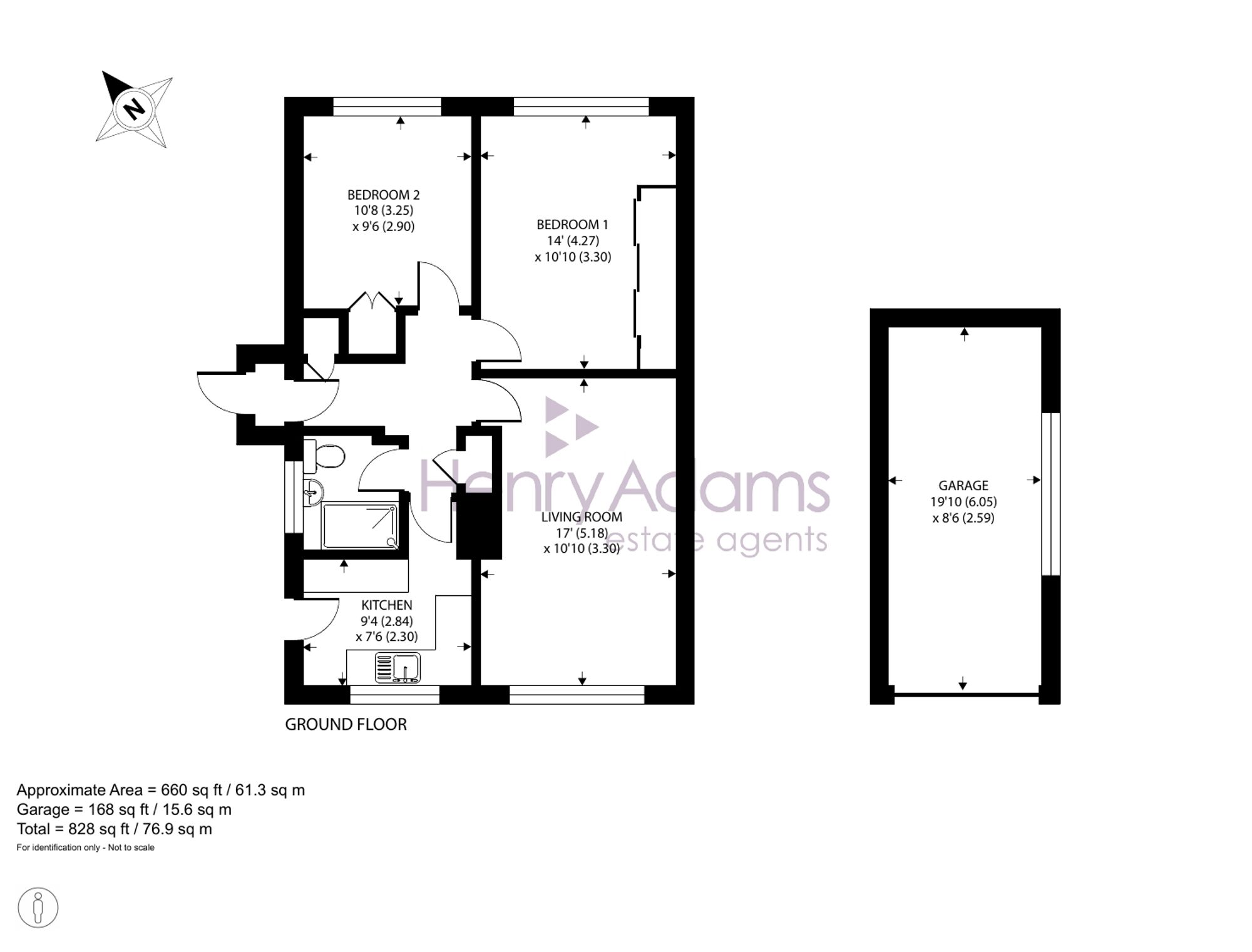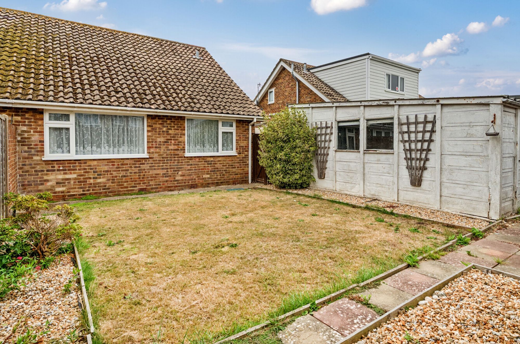 The bungalow features two double bedrooms, each complete with built-in wardrobes, providing ample storage space for your belongings, living room, kitchen and shower room with walk in shower. The property comes with the added convenience of a driveway (with additional space behind a gated access) and detached single garage. The enclosed rear garden, being mainly laid to lawn edged with stone covered borders, provides a private outdoor area for relaxing and entertaining, ideal for enjoying the fresh air and sunshine