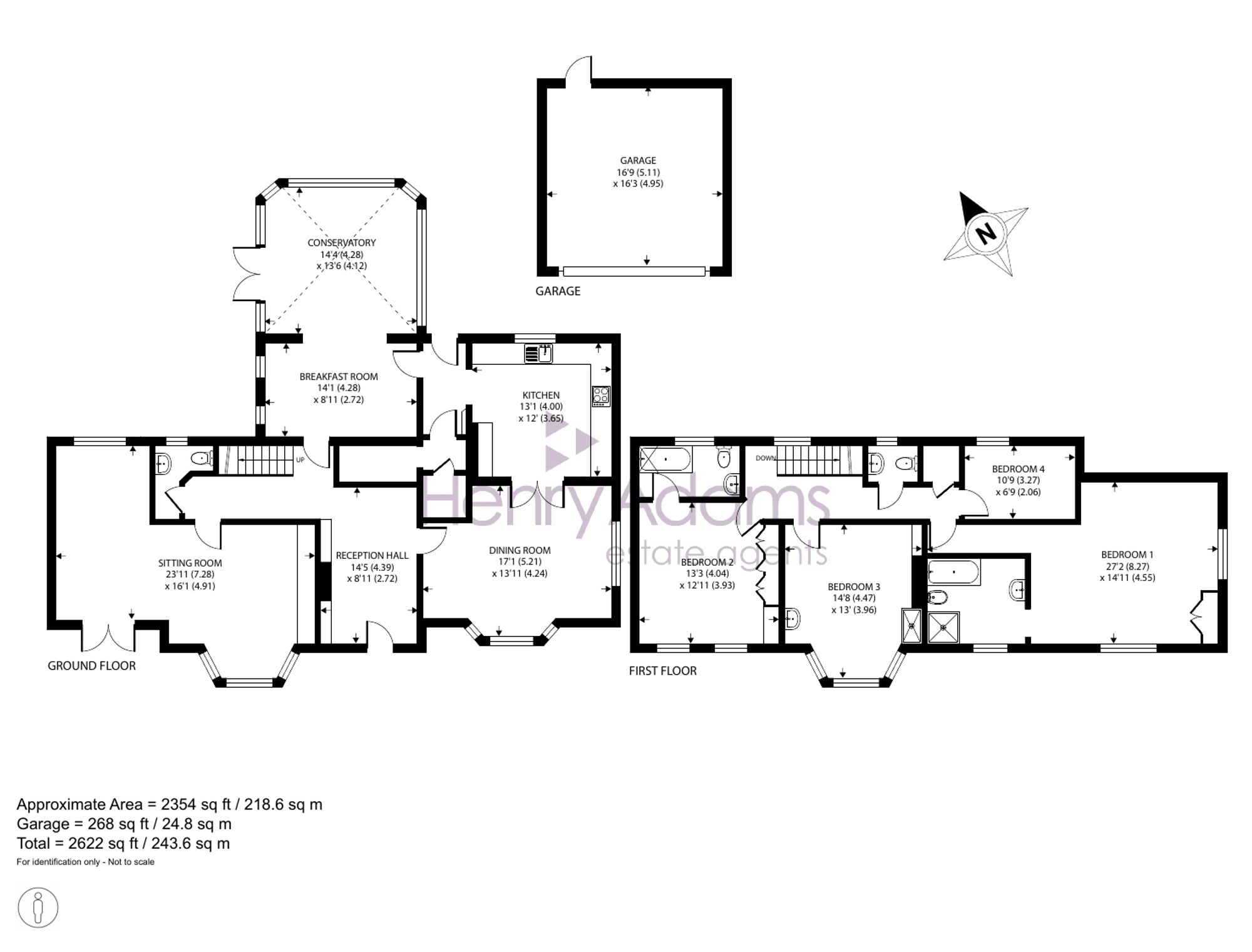 Upstairs, the spacious principal bedroom boasts a en-suite including a bath, shower, basin and bidet (no WC), while an additional bedroom also benefits from an en-suite bathroom. A third bedroom features a shower cubicle and there is a fourth bedroom and cloakroom completing the first-floor layout.