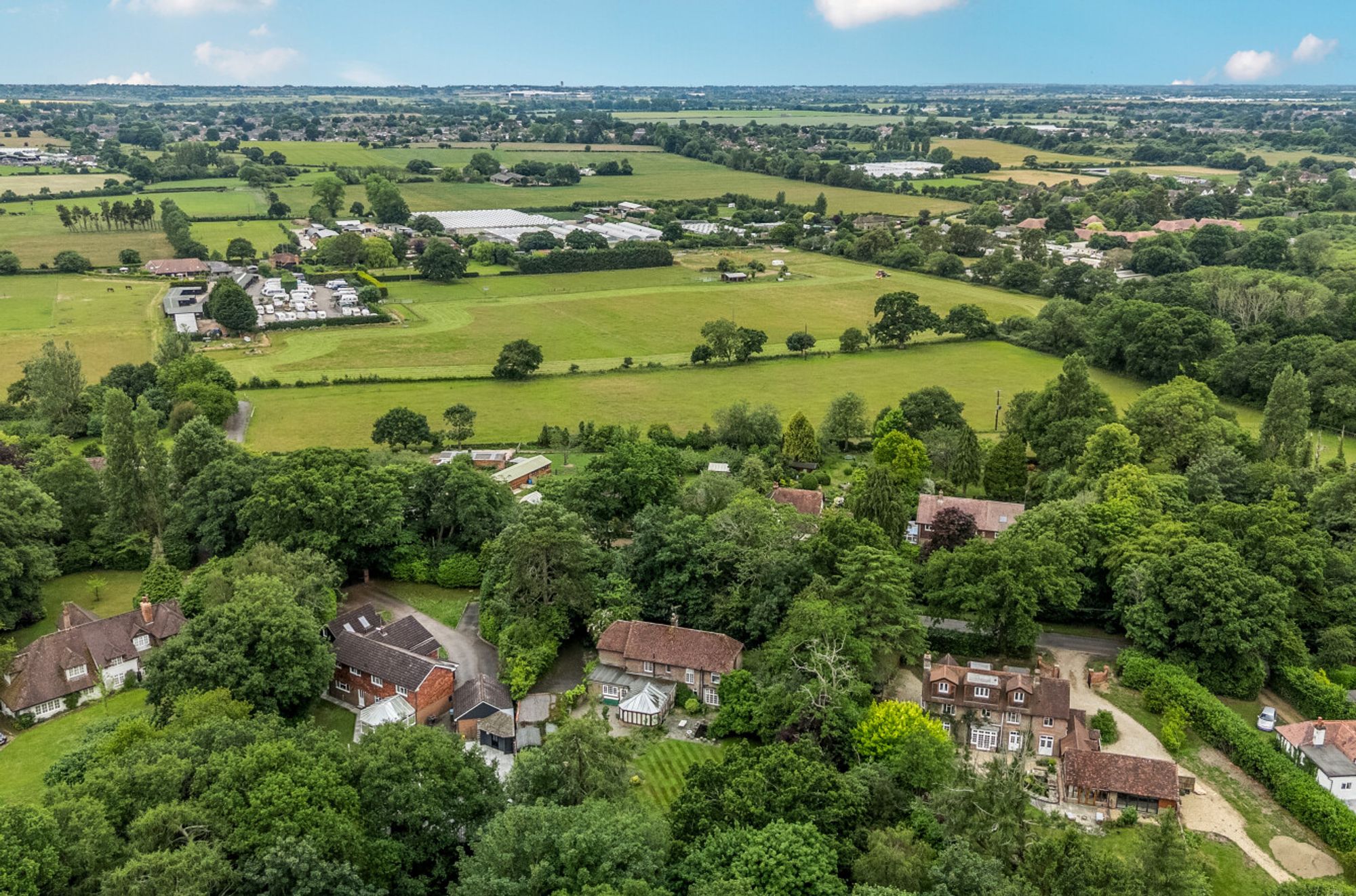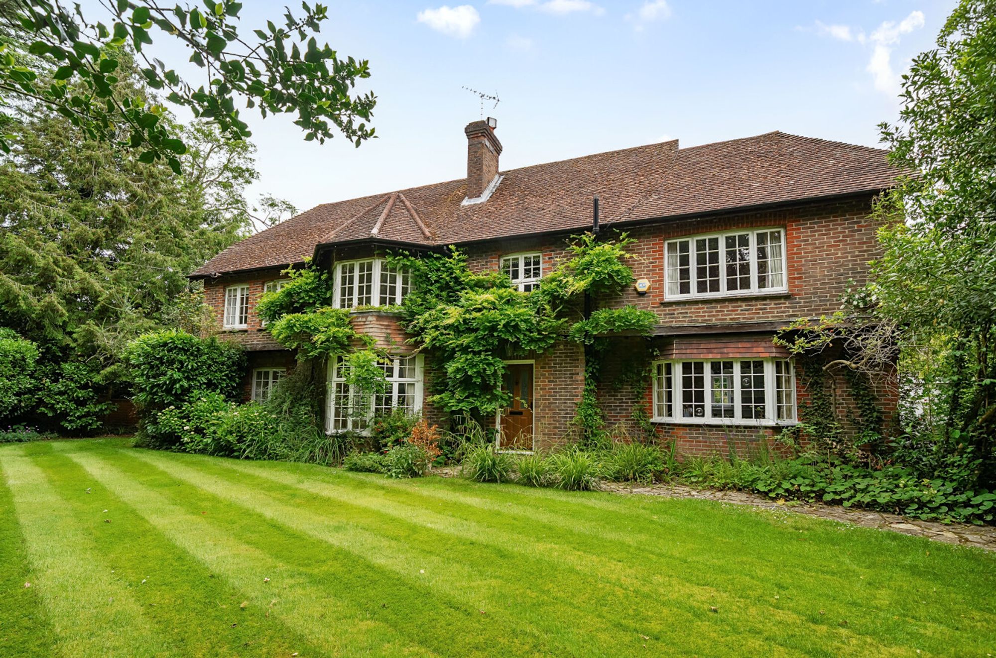 Set within over 1.5 acres of delightful grounds, the property enjoys beautifully maintained front and rear gardens, a tranquil copse and a paddock-style area offering privacy and outdoor space in abundance. Additional features include a double garage with electric door, private driveway and the advantage of vacant possession. A rare opportunity to secure a characterful home in a prestigious location with outstanding potential.