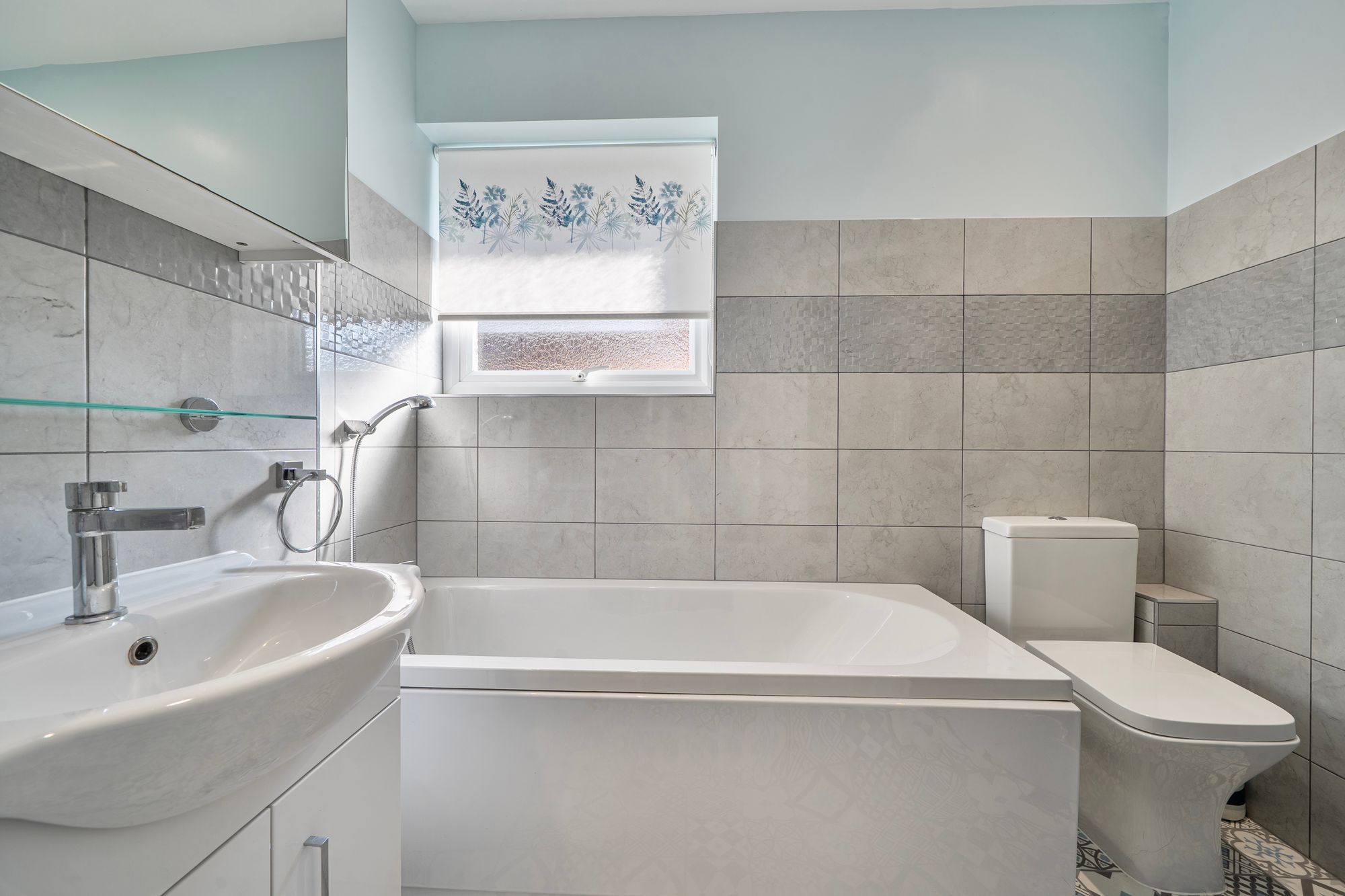 To the front, there are three bedrooms, two of which are generous doubles with attractive bay windows. The family bathroom is finished to a modern standard and includes both a bath and a separate shower cubicle. A guest WC and additional storage complete the accommodation.