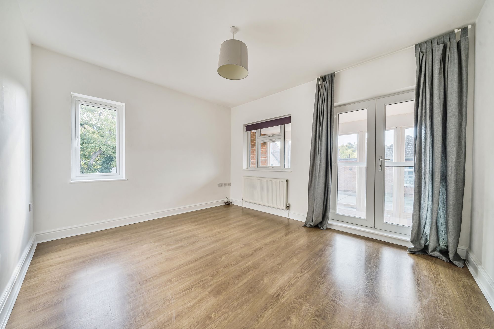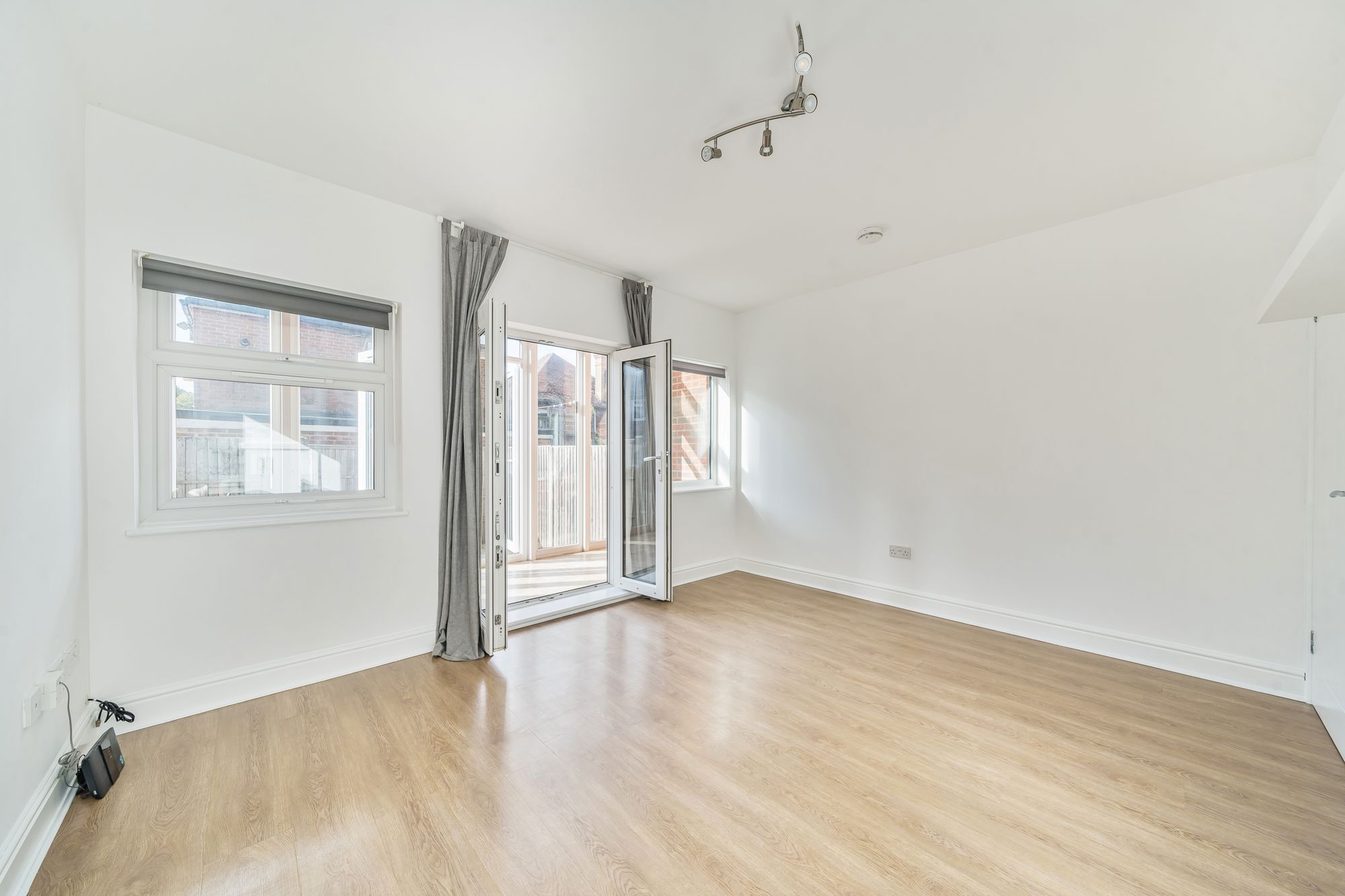Upstairs, the principal bedroom enjoys the same impressive proportions as the living space below, with a Juliette balcony overlooking the glazed extension. A second bedroom and a sleek, modern bathroom complete the accommodation.