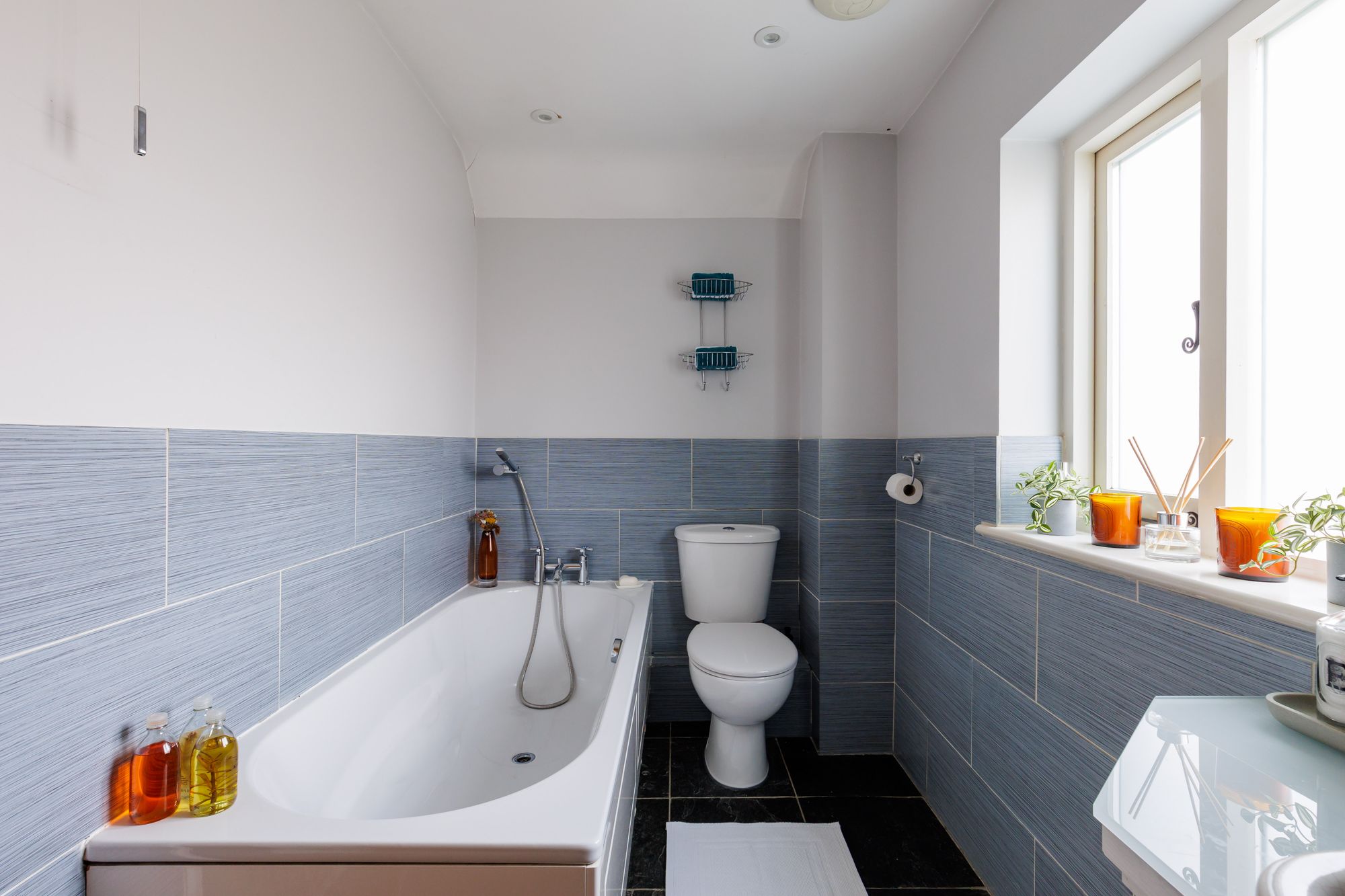 Upstairs, the accommodation continues to impress with four well-proportioned bedrooms, including three doubles. Two of the bedrooms benefit from fitted wardrobes, and the fourth bedroom currently serves as a home office or study. A contemporary family bathroom completes the first floor.