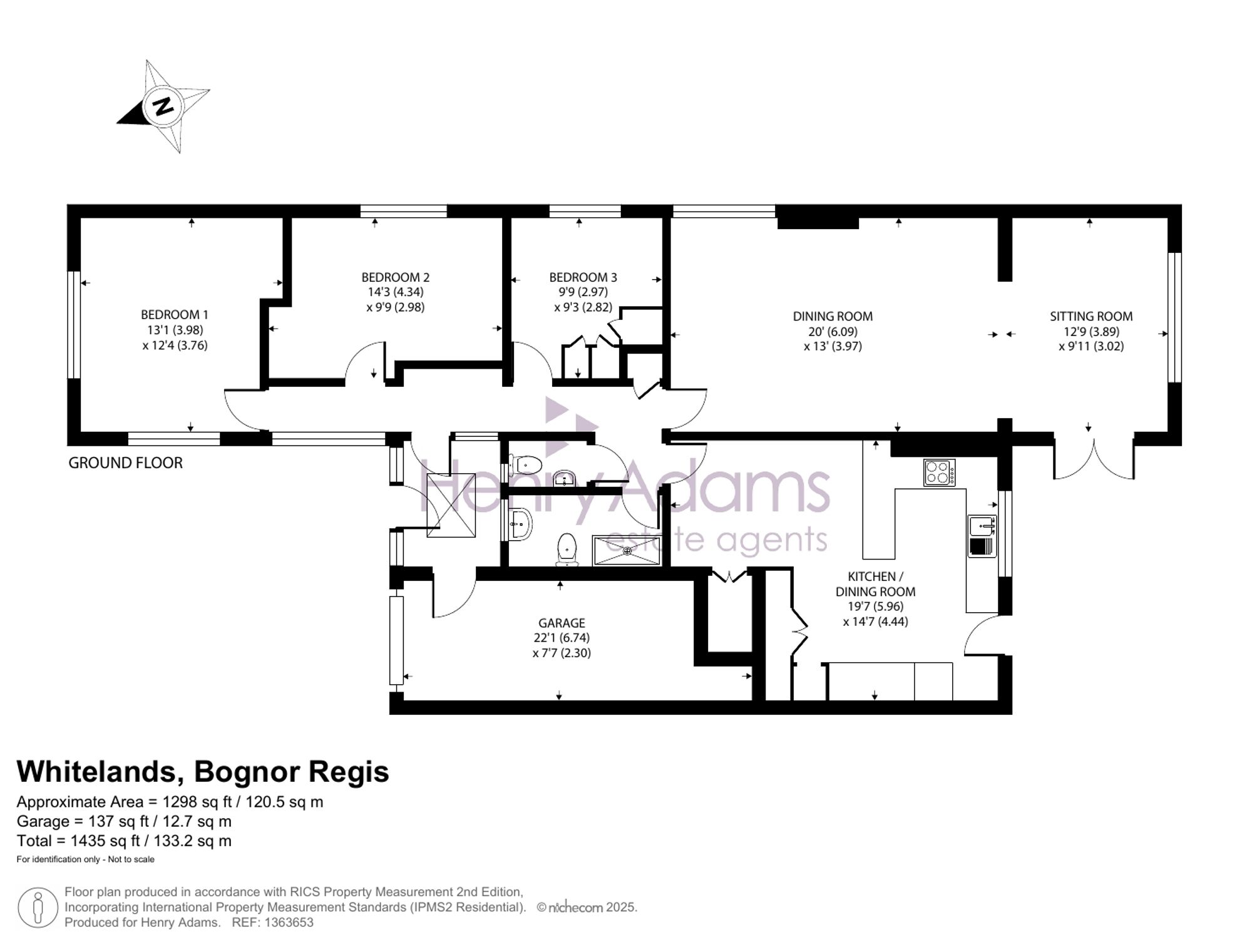 The property has been extended by the current owner to create an impressive 1,435 sq ft of accommodation, including the integral garage. The accommodation briefly comprises: entrance lobby with doors into the garage and entrance hall. From the hallway, the three bedrooms will be found, two of which are generous double rooms and the third being a generous single room. At the end of the hallway the sitting room has been extended to provide an additional reception area, perhaps providing a formal dining area, or second sitting area overlooking the southerly rear garden with access via the French doors. The kitchen is equipped with a range of modern white units. This has also been extended and now provides room for a dining table and access to the garden. The shower room with wash basin and toilet, and the separate WC complete the accommodation.
