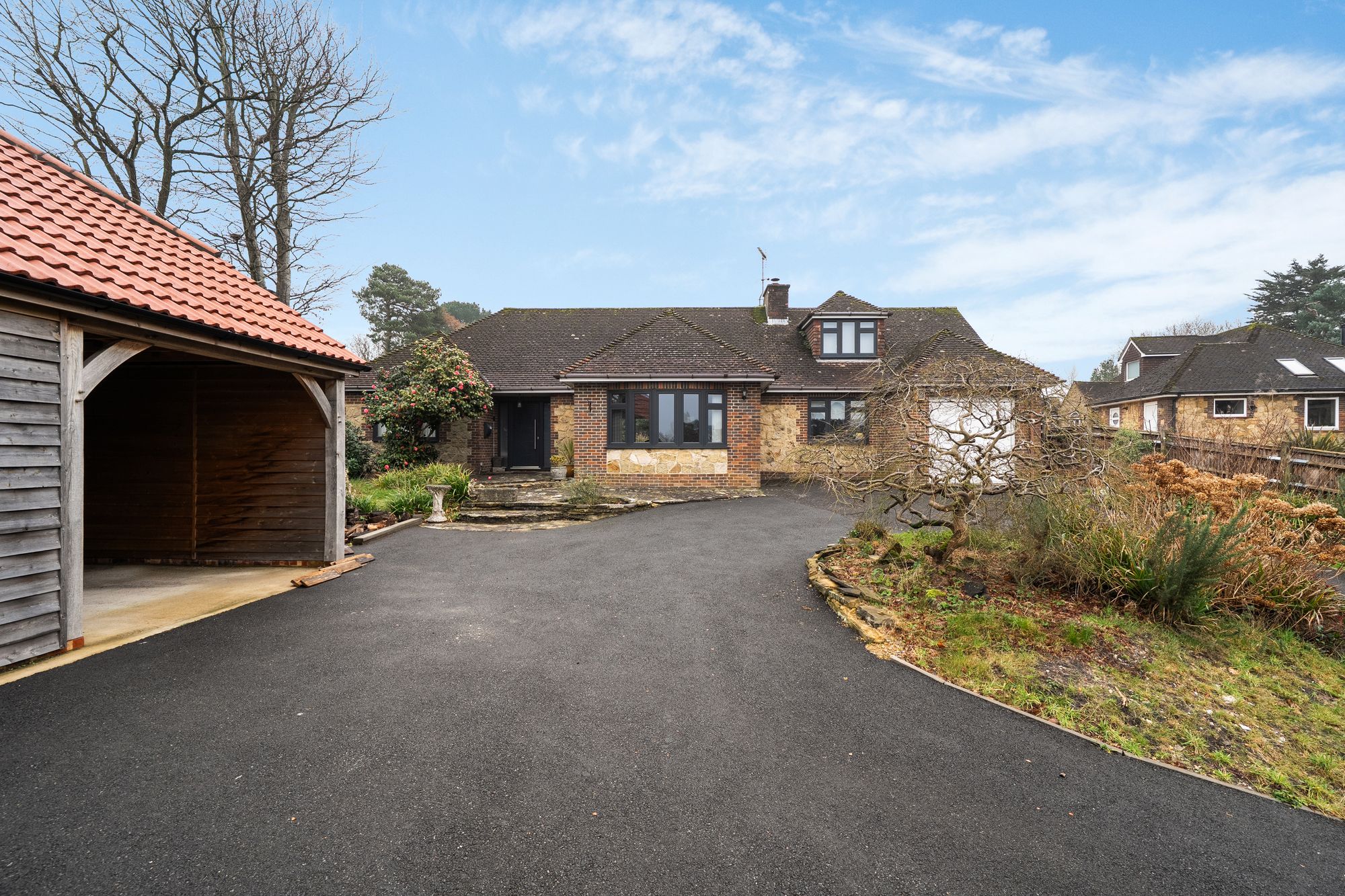This beautifully presented three bedroom detached chalet bungalow is nestled in an elevated position with far-reaching views towards the South Downs, offering a versatile and spacious layout ideal for modern family living.Situation