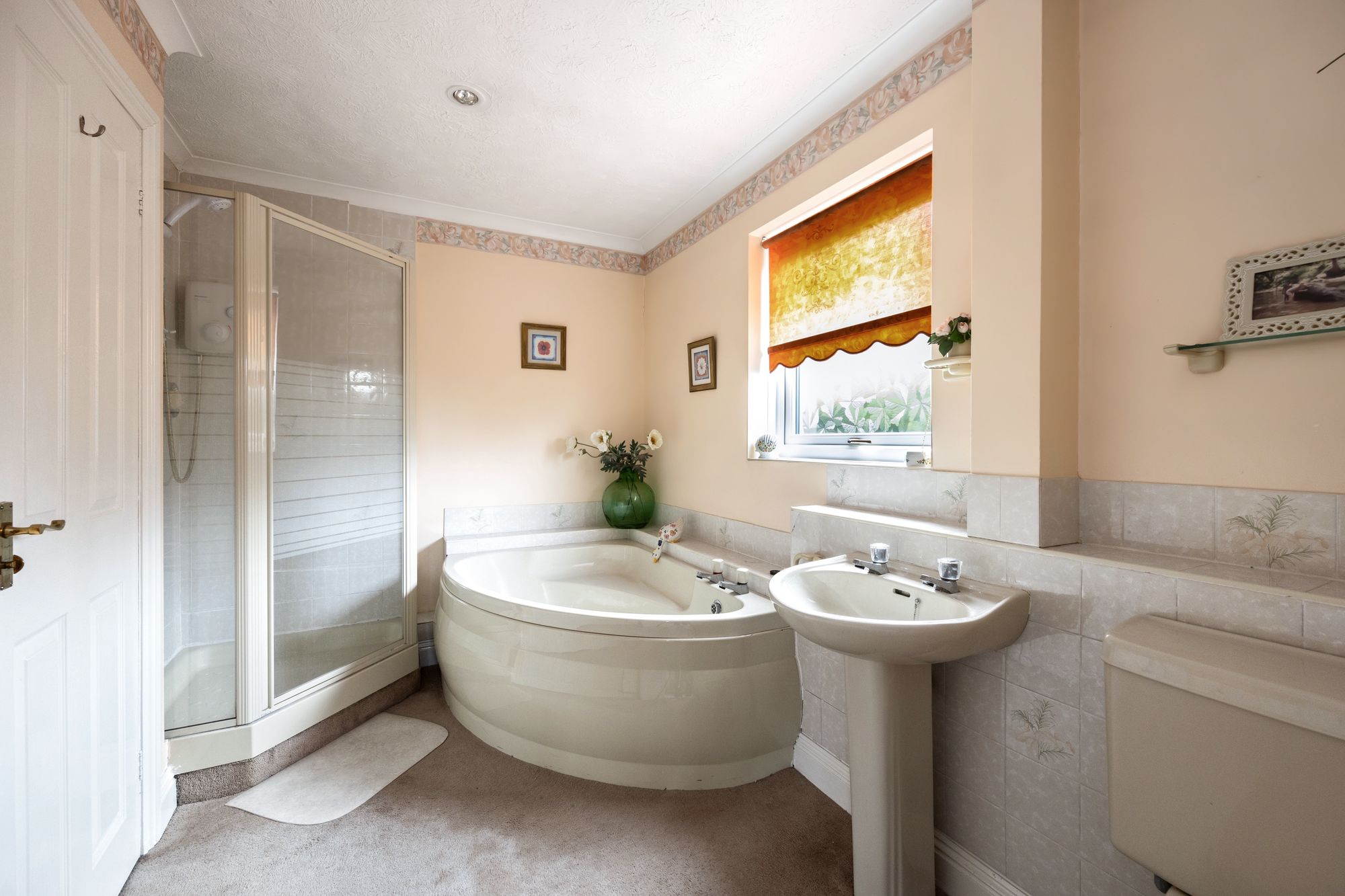 To the first floor; the main bedroom enjoys an aspect to the rear and front of the property, there is a large walk-through dressing area as well as a personal ensuite bathroom with shower. A second bedroom has an aspect over the rear gardens with two windows, there is a well equipped en-suite bathroom which has a corner bath, separate shower, a low level WC and a wash hand-basin; it also has a Jack and Jill style set up with a second door accessible from the landing. Bedroom three is also of decent double proportions and has an aspect to the front of the property. There is access to the attic from the landing.