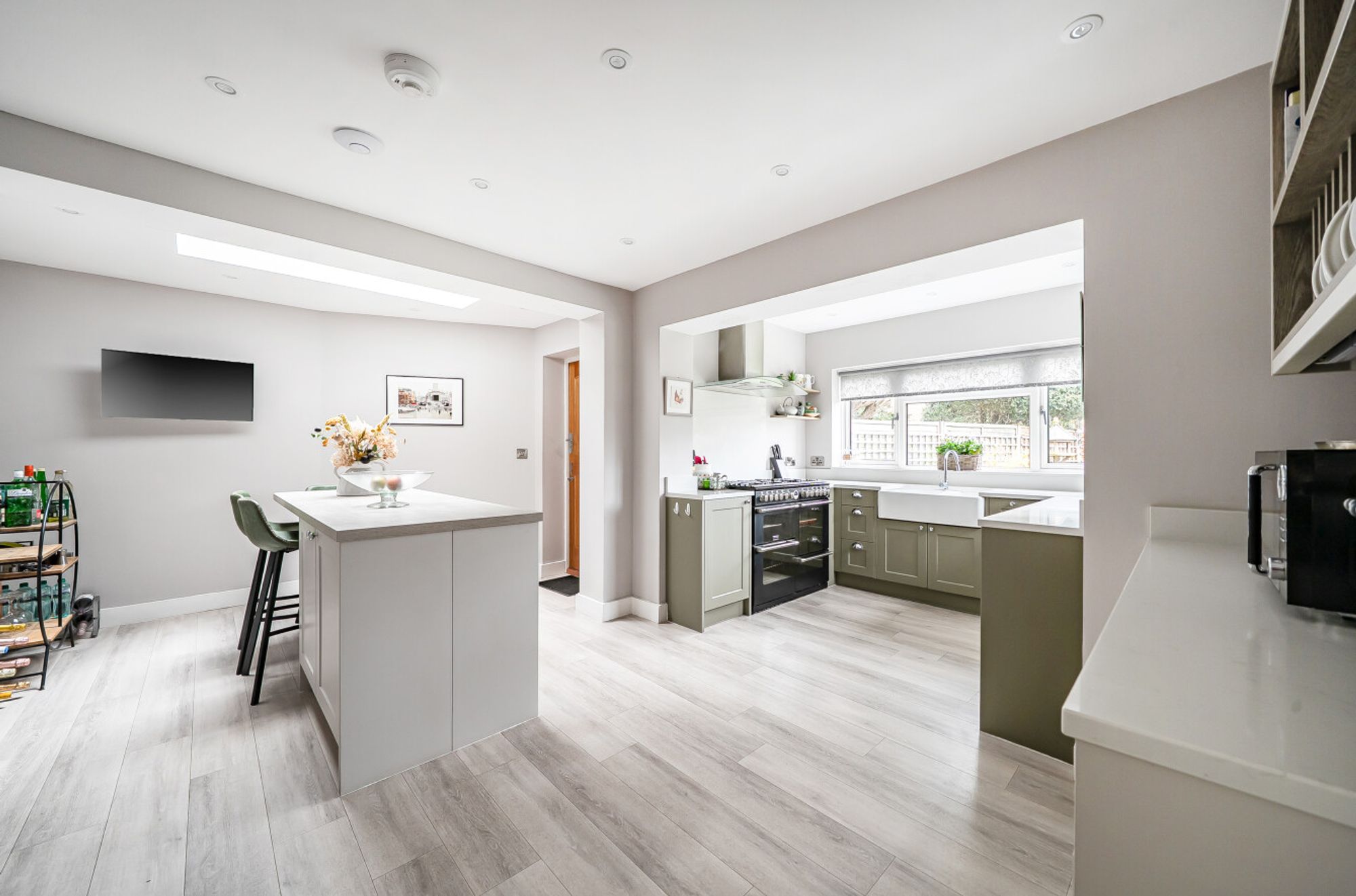 This beautiful three bedroom detached house is set within a sought-after private estate, offering a superb blend of comfort, space, and style just a short stroll from the beach. The property features a fabulous triple aspect reception room that is flooded with natural light, creating an inviting atmosphere for relaxing or entertaining. The modern kitchen/dining room is thoughtfully designed with integrated appliances and ample space for family meals or gatherings.