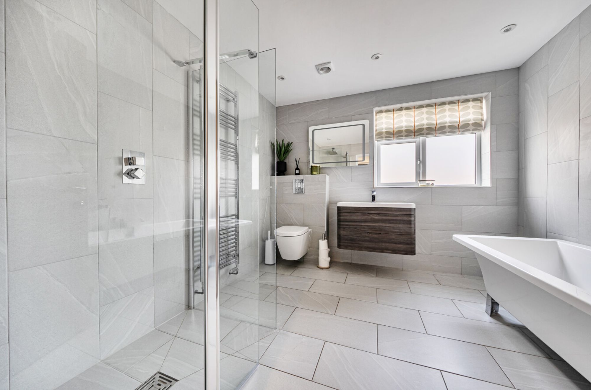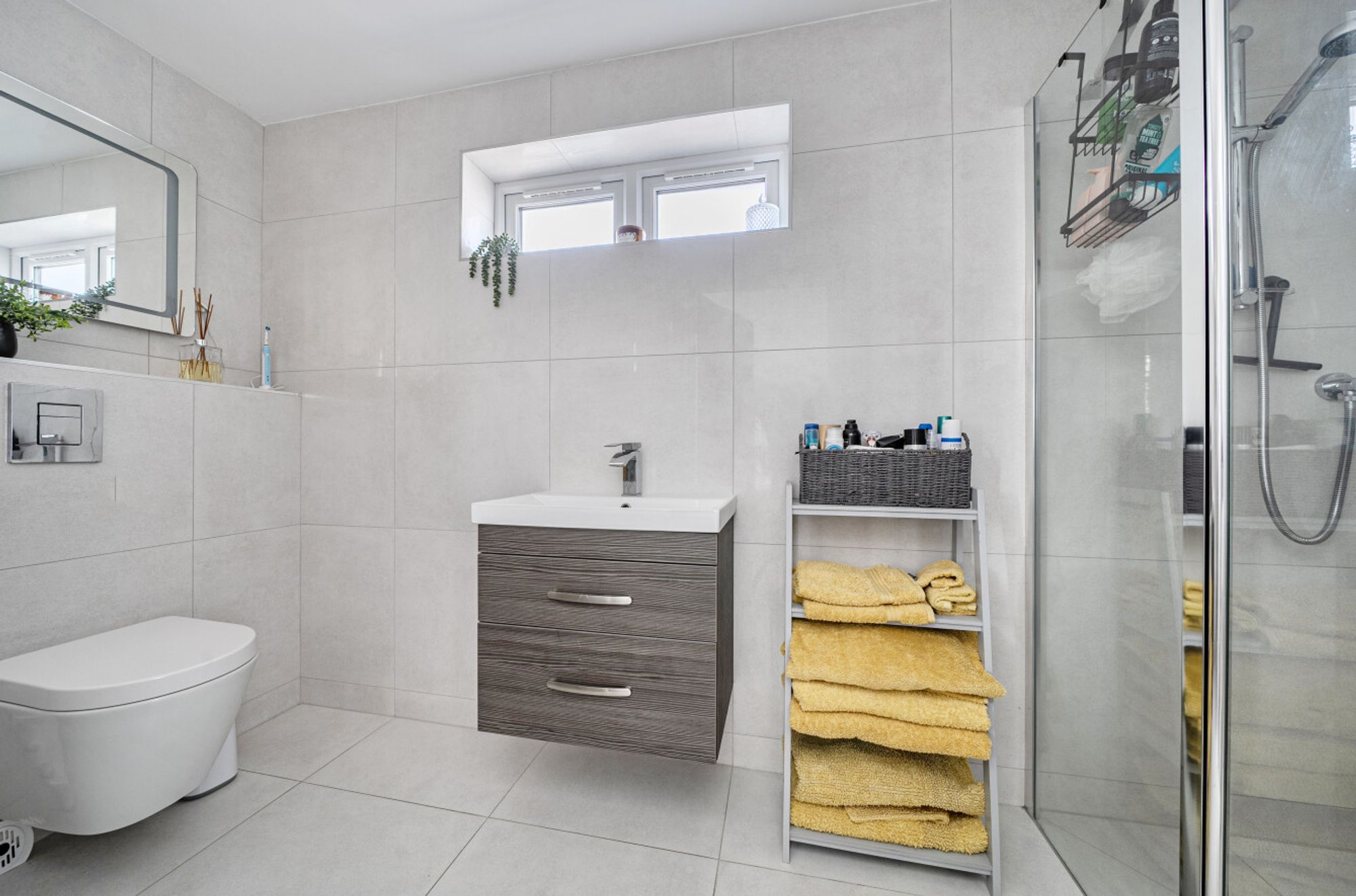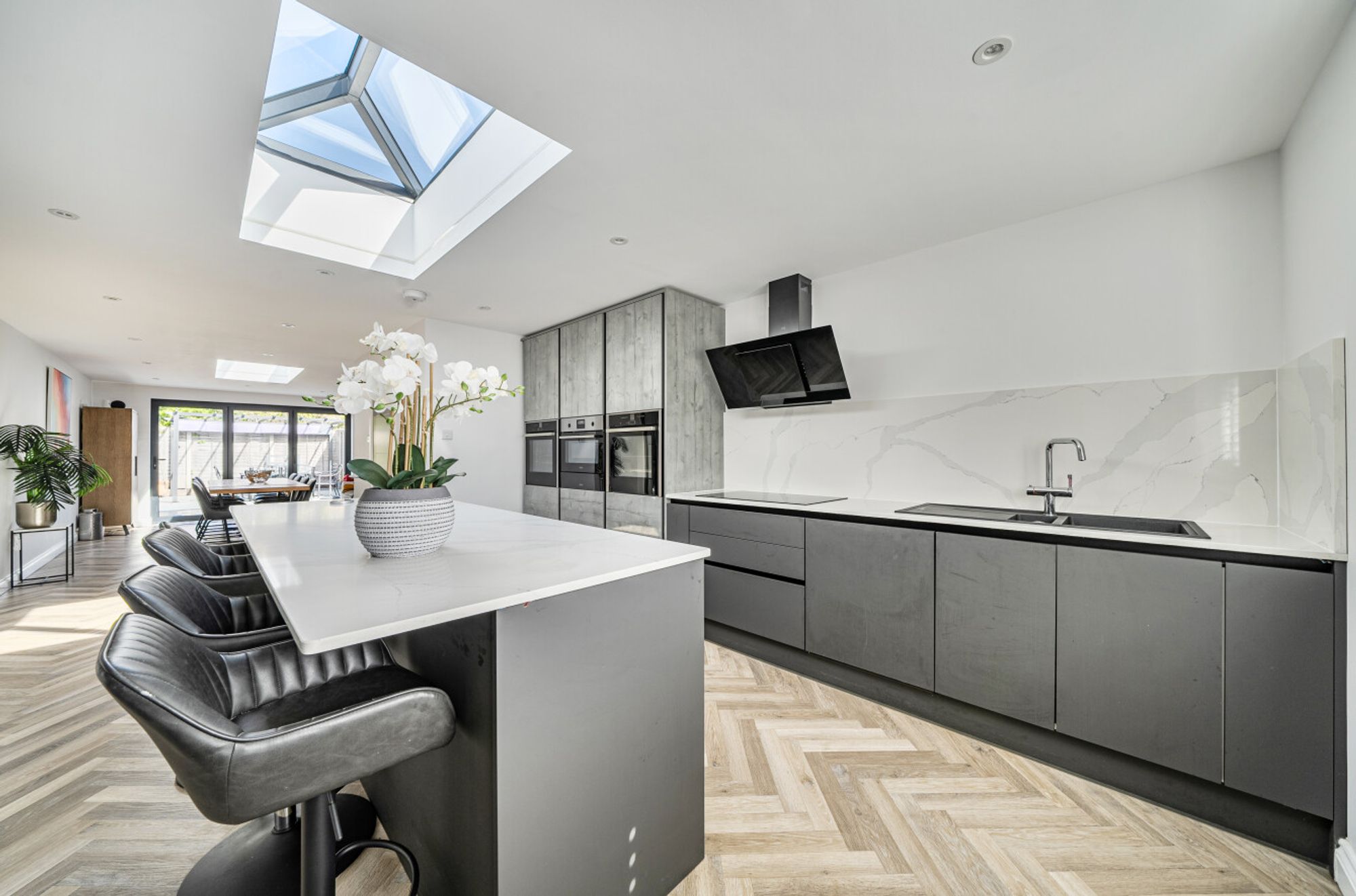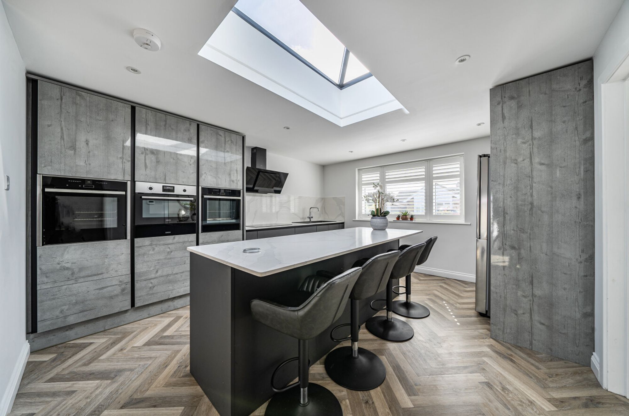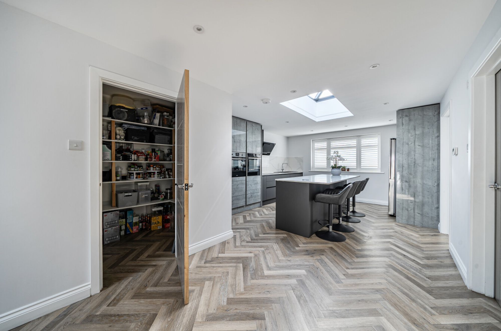 The property has been tastefully modernised throughout, with meticulous attention to detail evident from the moment you step inside. The spacious entrance hall leads to the heart of the home, a stunning high-end kitchen, equipped with built-in appliances and ample workspace, perfect for those who love to cook and entertain. Adjacent to the kitchen, a dedicated utility room and a walk-in pantry offer additional storage and functionality, helping to keep the main living areas organised and clutter free. The living and dining areas are immaculately presented, providing a welcoming and versatile space for both every-day living and entertaining guests. Further, three generously sized double bedrooms, including a principal suite that benefits from a luxurious en-suite shower room, providing a private retreat for relaxation. The family bathroom is equally impressive, featuring both a bath and a separate walk-in shower, finished to a high specification to ensure comfort and convenience for all residents.
